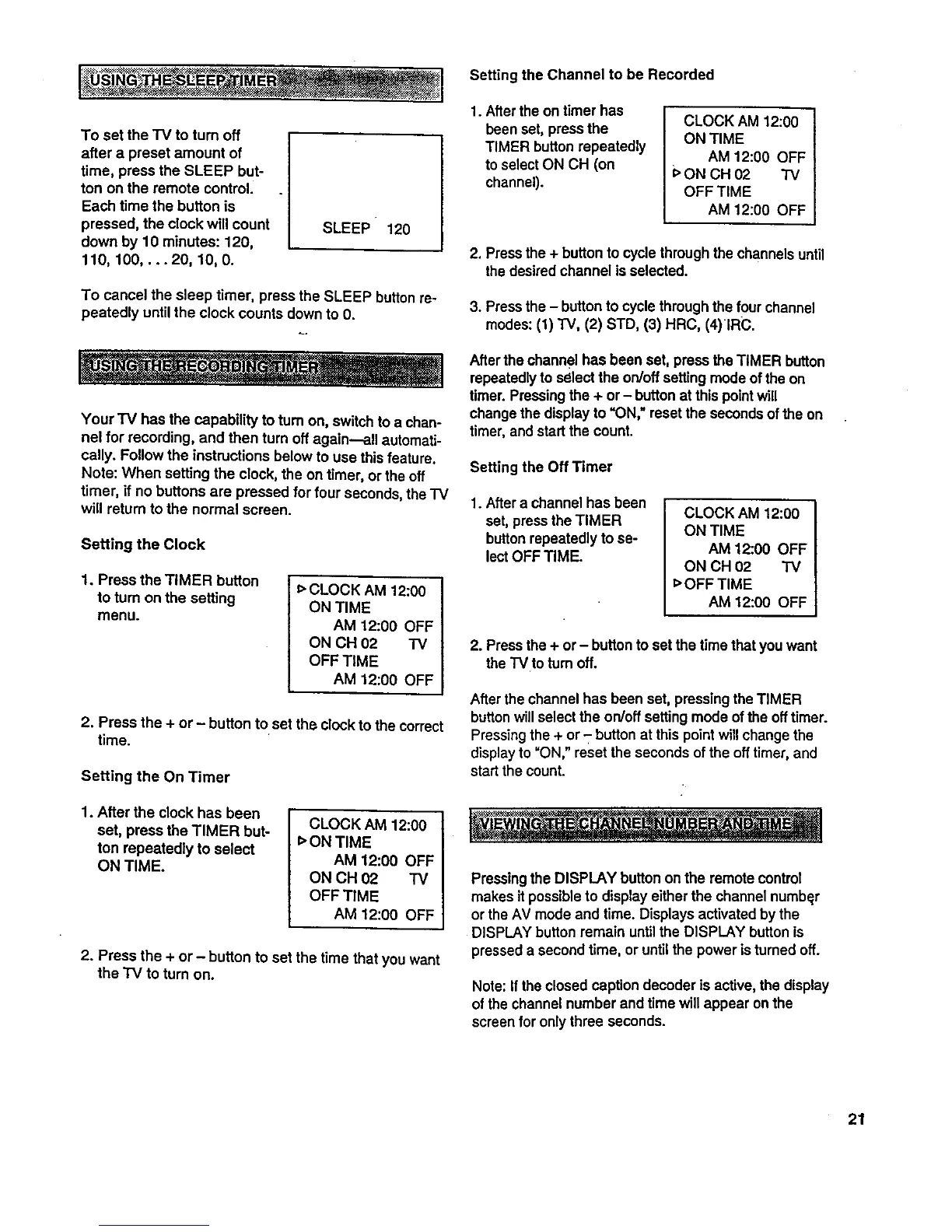 After the channel has been set, press the TIMER button