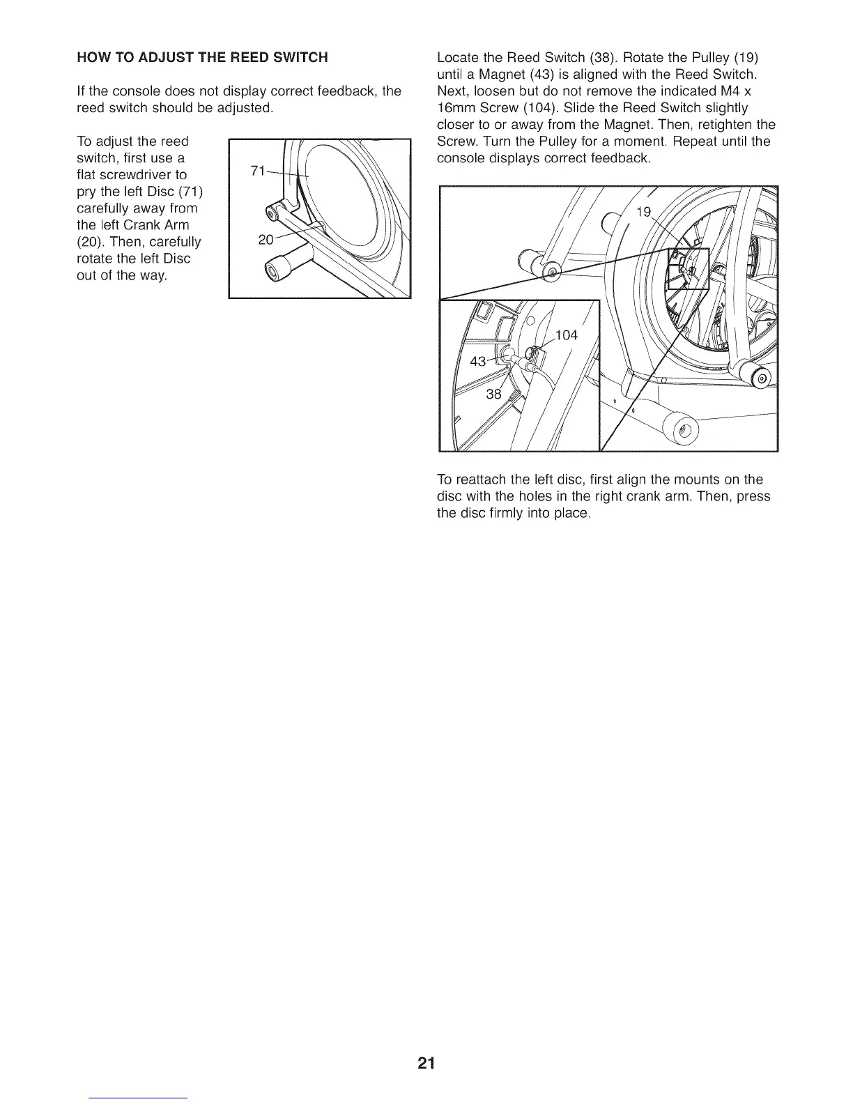 Locate the Reed Switch (38). Rotate the Pulley (19)