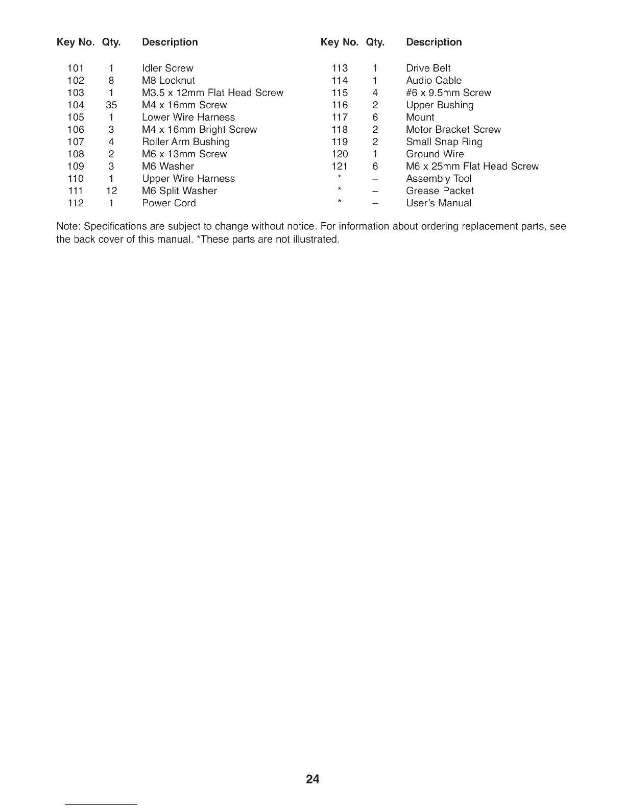 103 1 M3.5 x 12mm Flat Head Screw 115 4 #6 x 9.5mm Screw