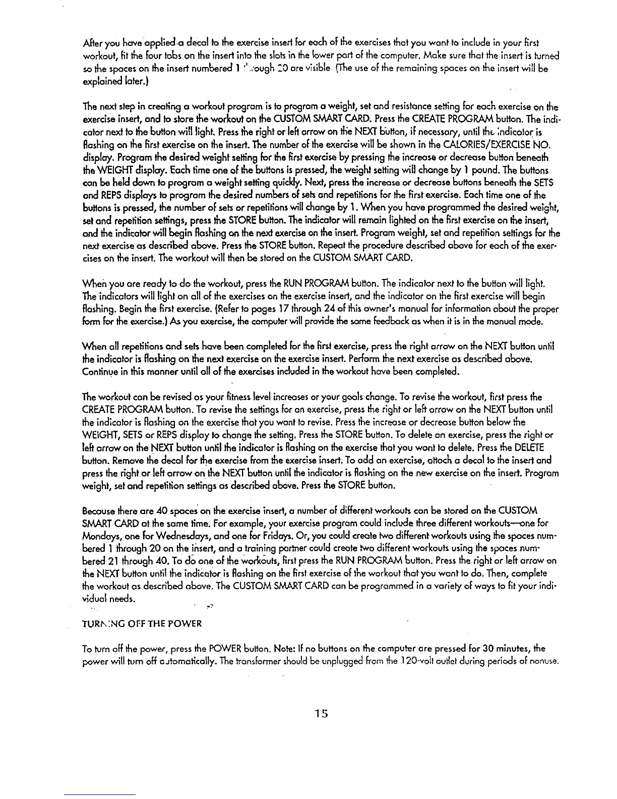 the workout as described above. The CUSTOM SMARTCARD can be programmed in a variely oFways to Fityour indi-