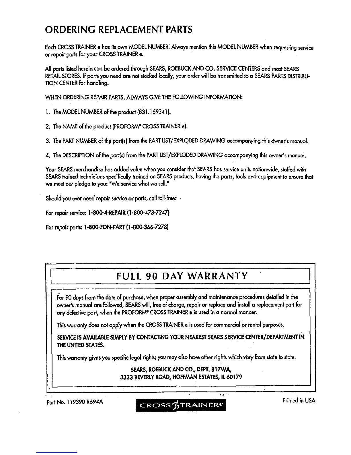 EachCROSSTRAINERe has itsownMODELNUMBER.Always mentionthisMODELNUMBERwhen requestingservice