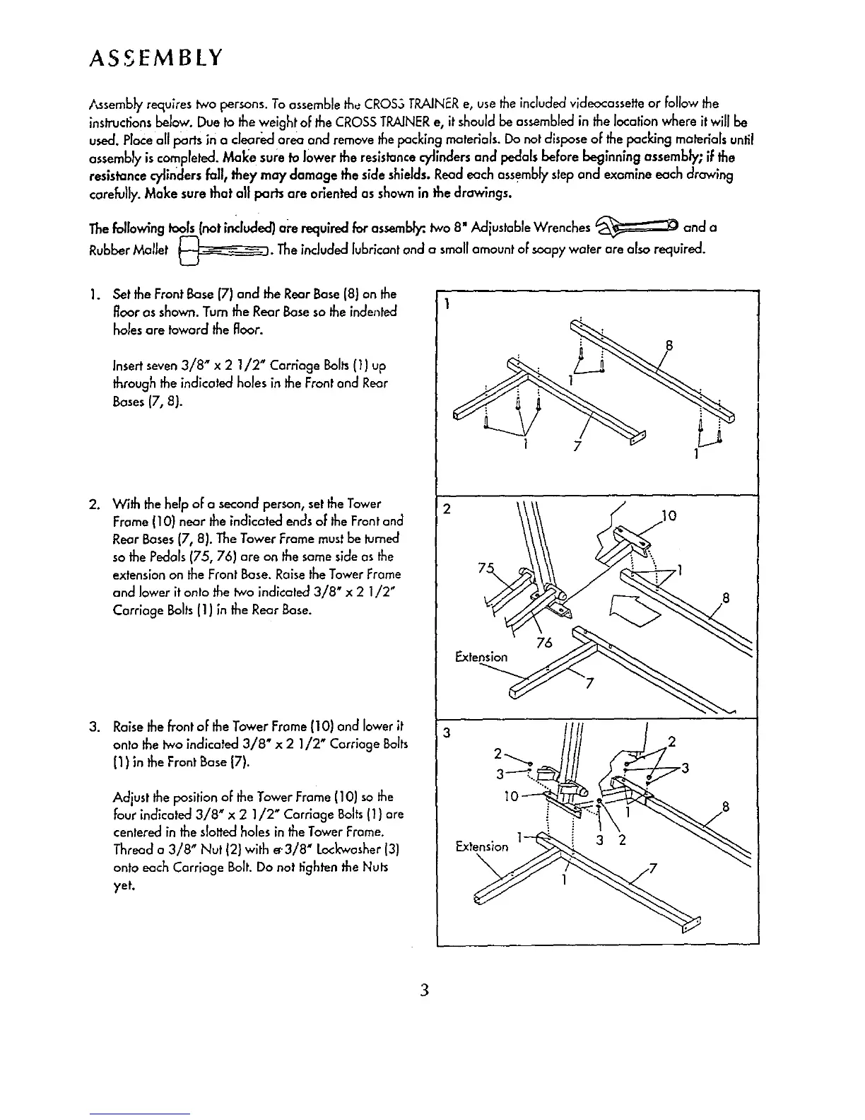 Assembly requires two persons. To assemble the CROSSTRAINERe, use the included videocassette or follow the