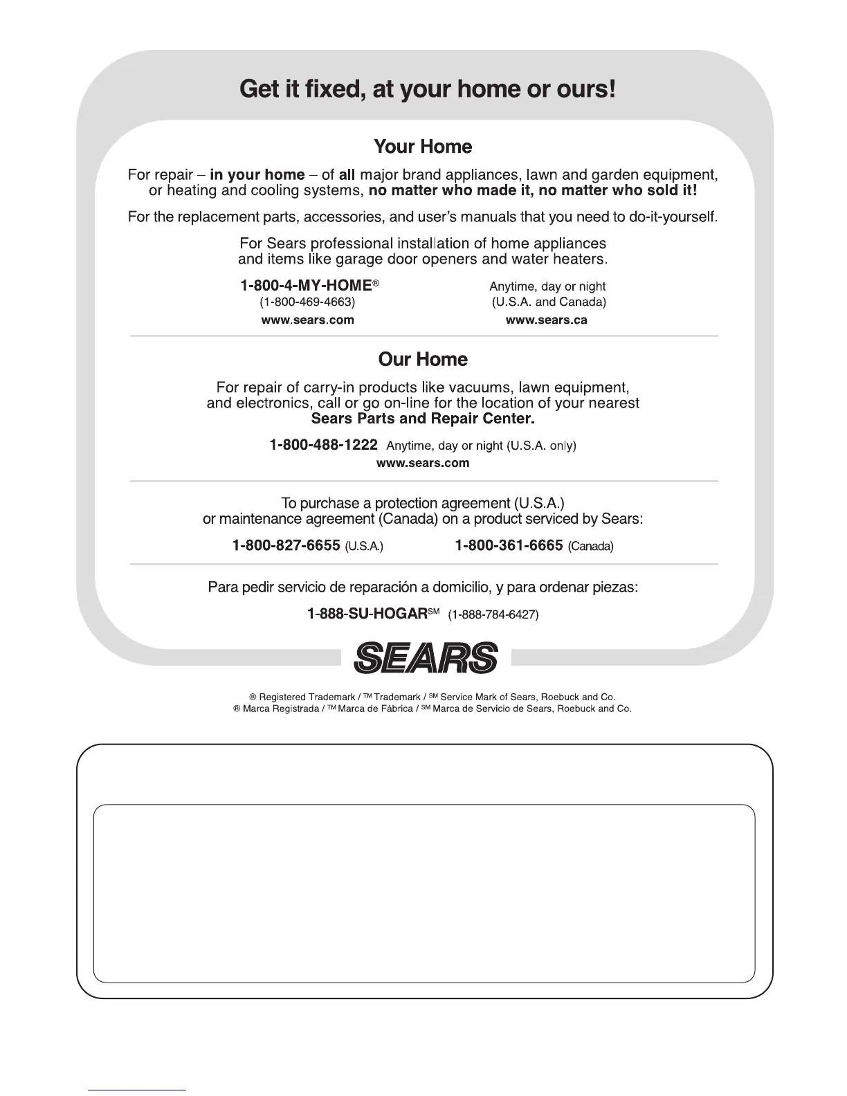 Sears, Roebuck and Co., Dept. 817WA, Hoffman Estates, IL 60179