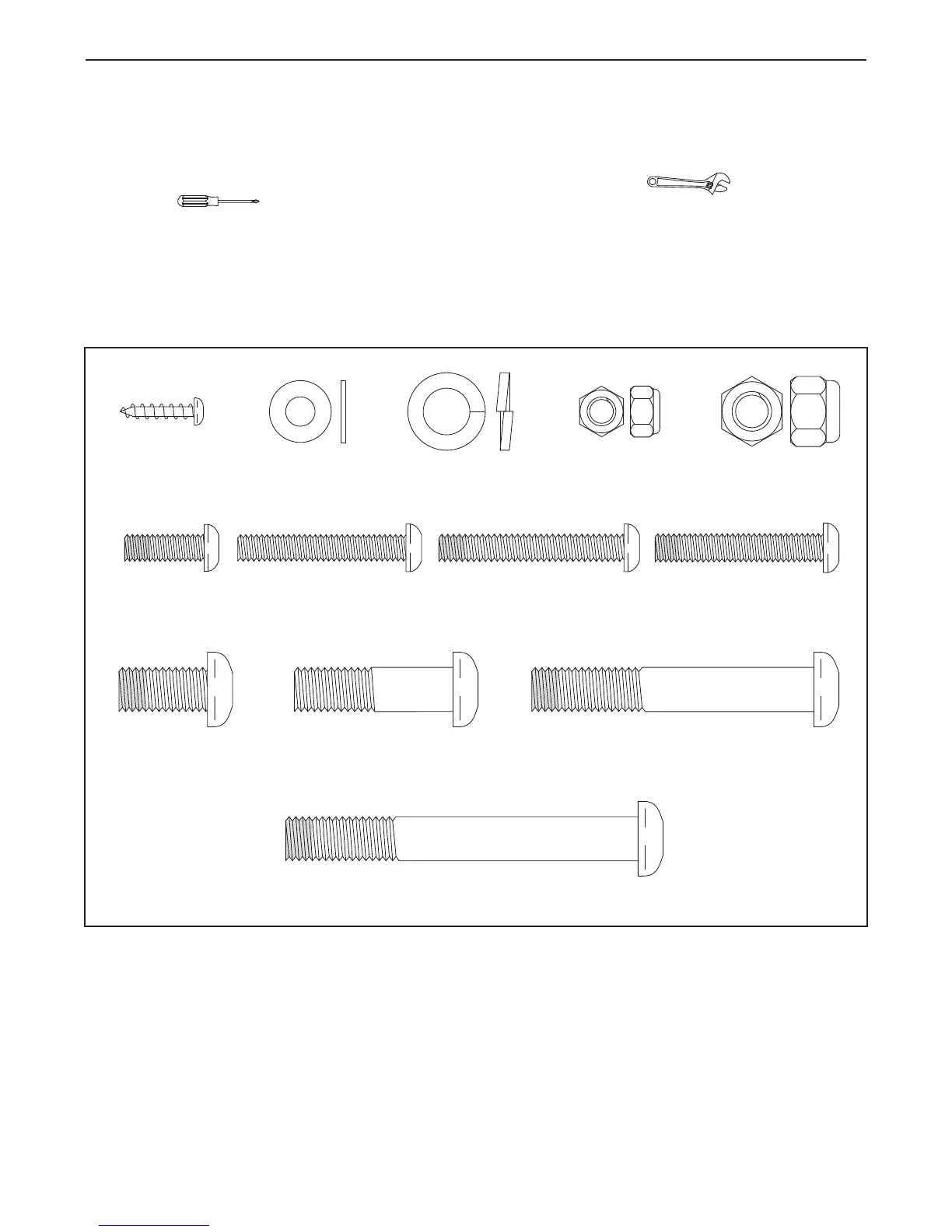 See the drawings below to identify the small parts needed for assembly. The number in parentheses below each