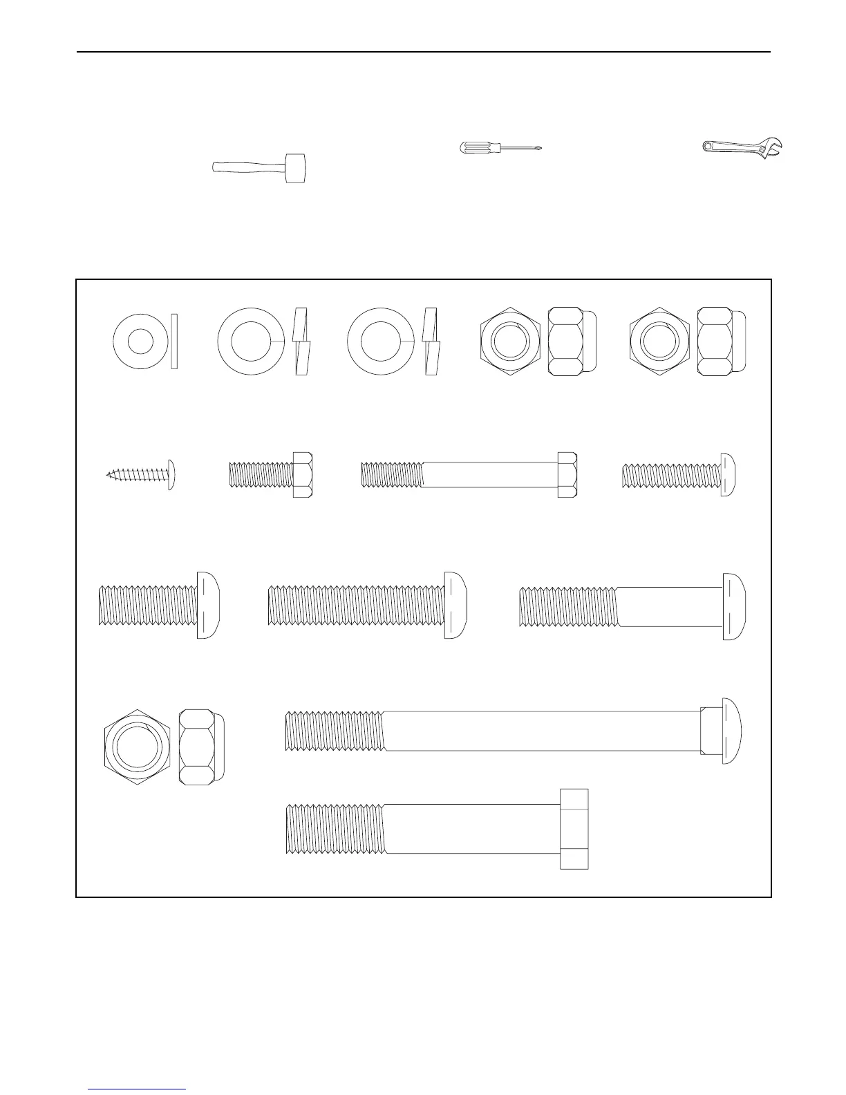 As you assemble the crosstrainer, use the drawings below to identify the small parts used in assembly. The