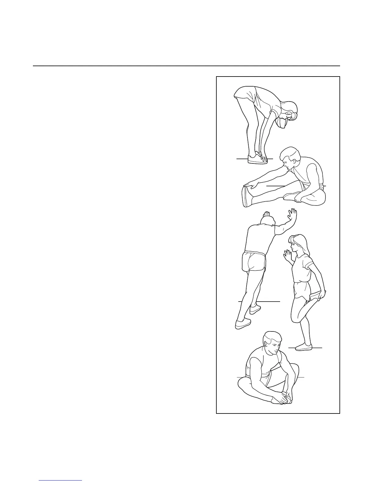 The correct form for several basic stretches is shown at the