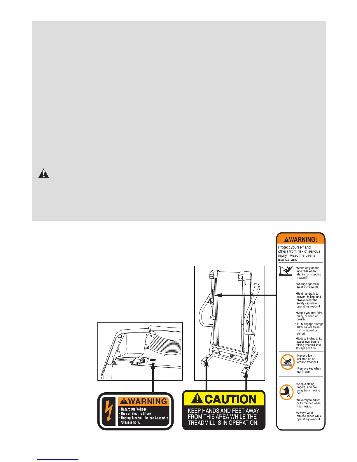 The decals shown have been placed on your treadmill. If a decal is missing, or if it is