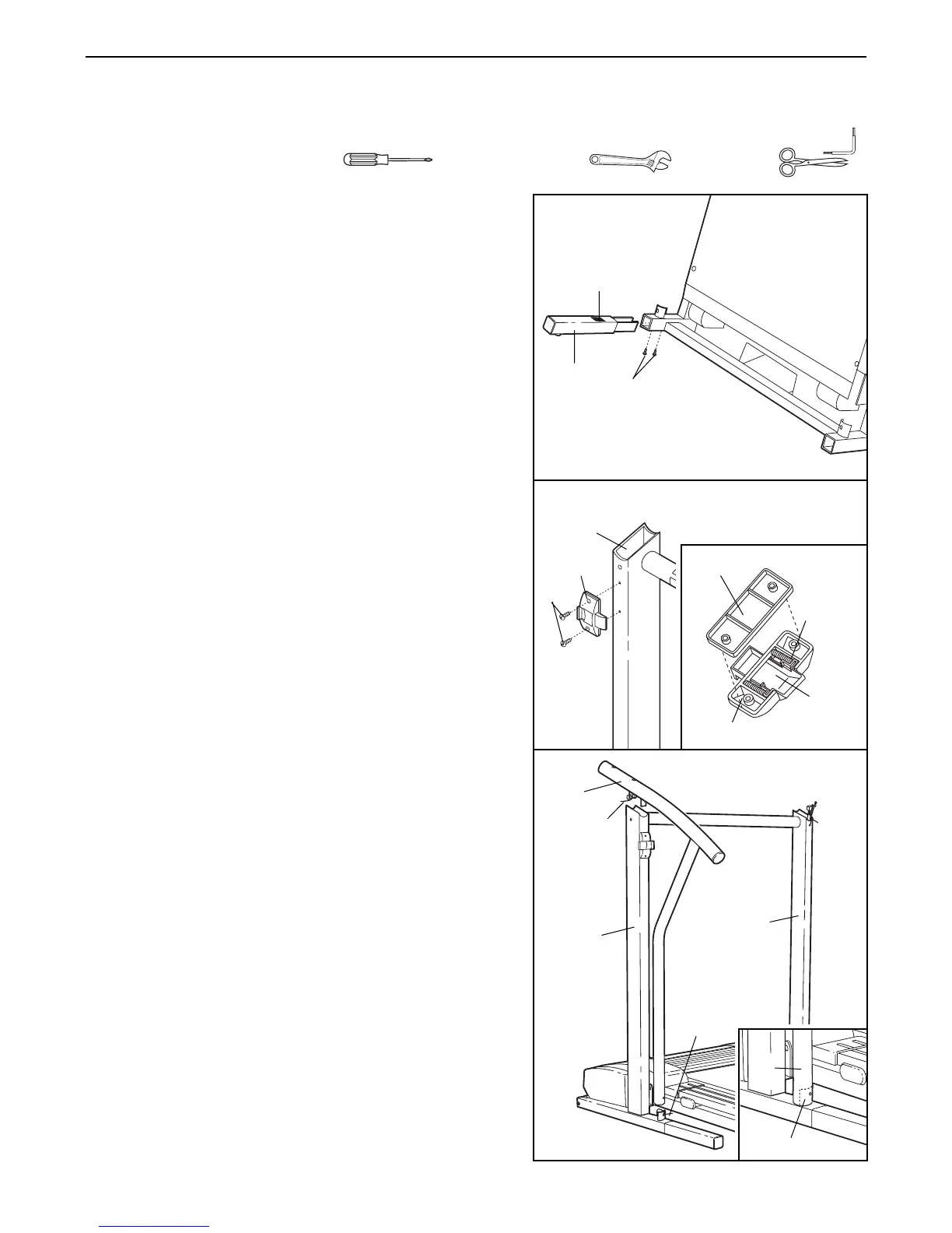 Assembly requires two people. Set the treadmill in a cleared area and remove all packing materials. Do not