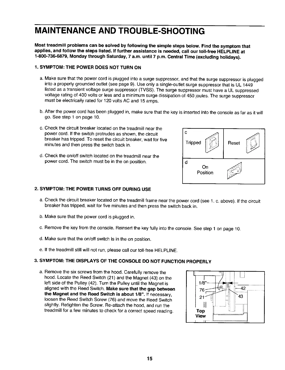 e. If the treadmill still will not run, please call our toll-free HELPLINE.