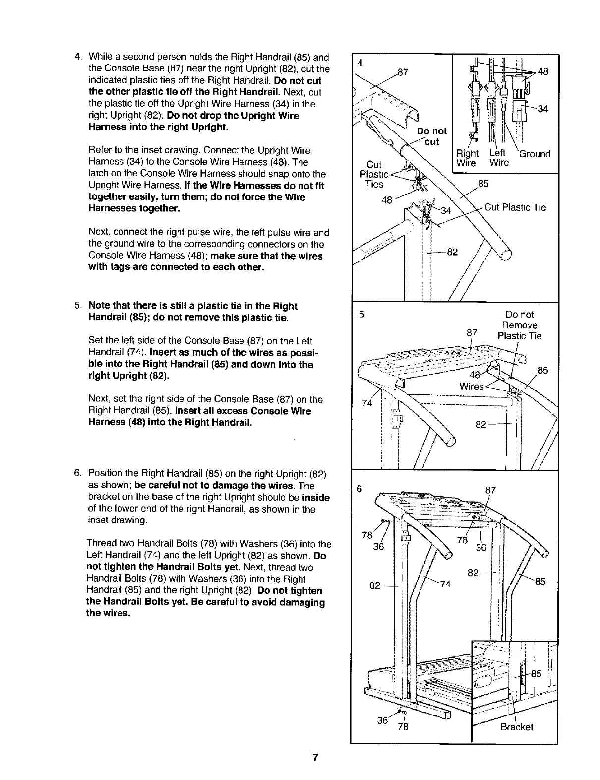 Handrail (85) and the right Upright (82). Do not tighten