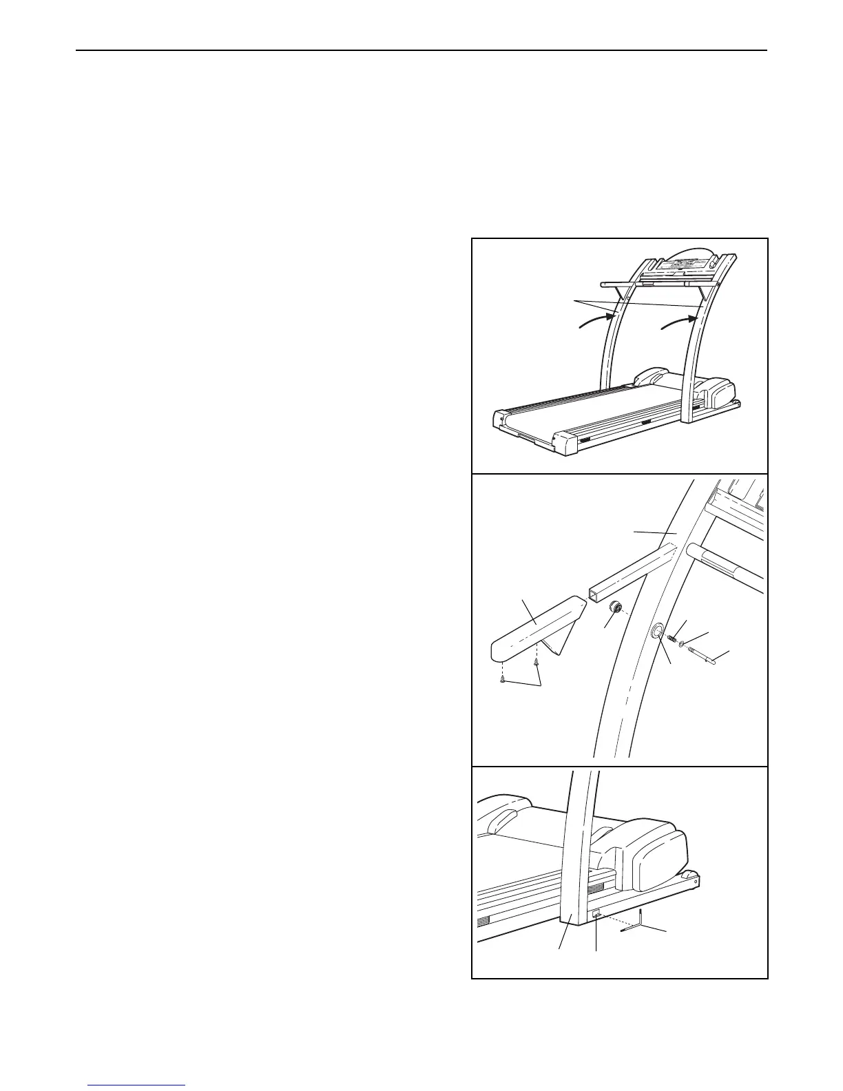 Assembly requires two people. Set the treadmill in a cleared area and remove all packing materials. Do not