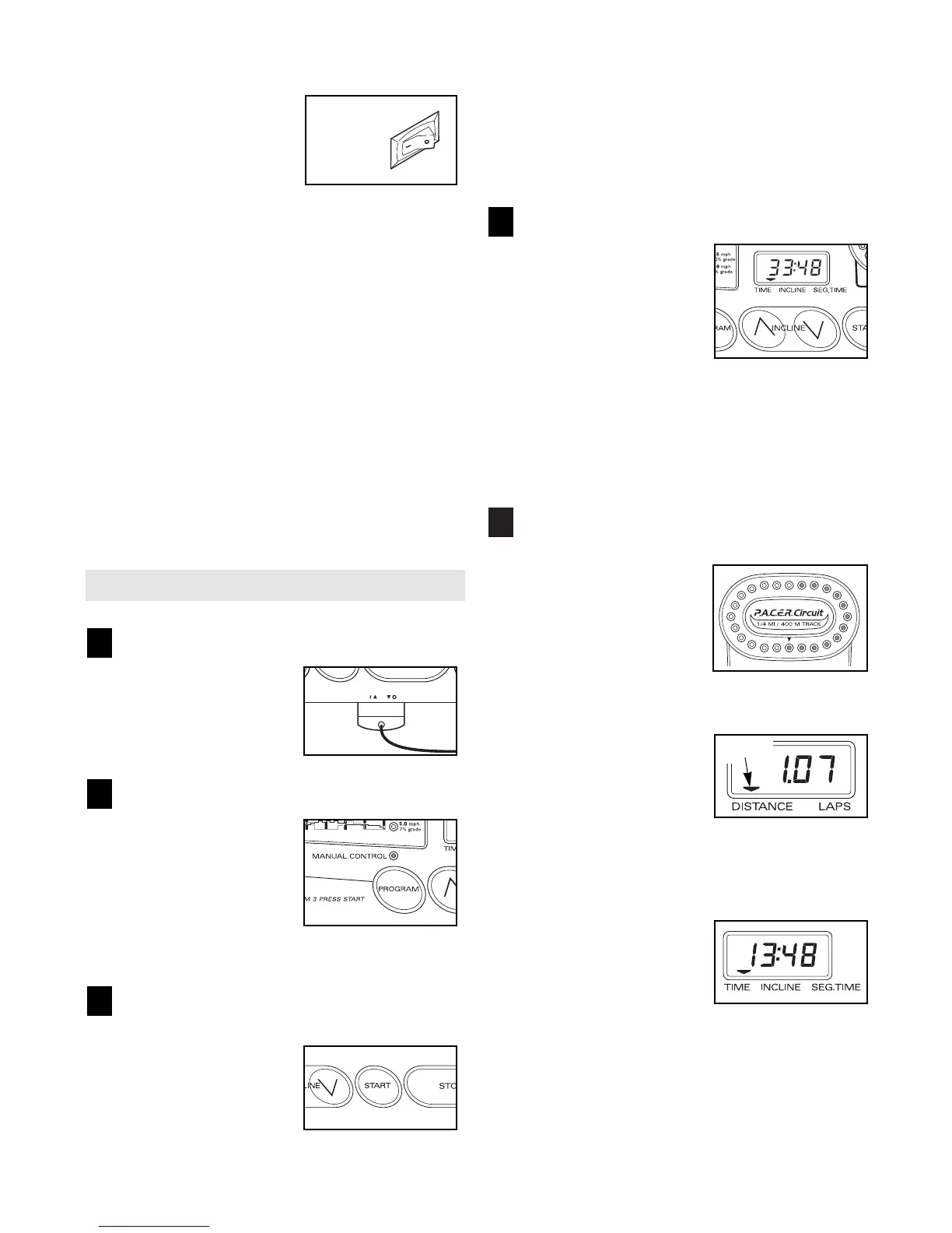 The TIME/INCLINE/SEG TIME display will begin