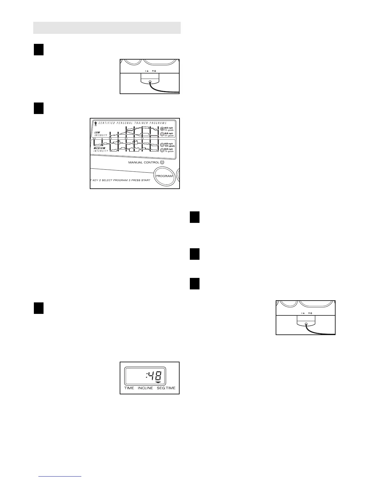 TIME/INCLINE/SEG TIME display counts down to