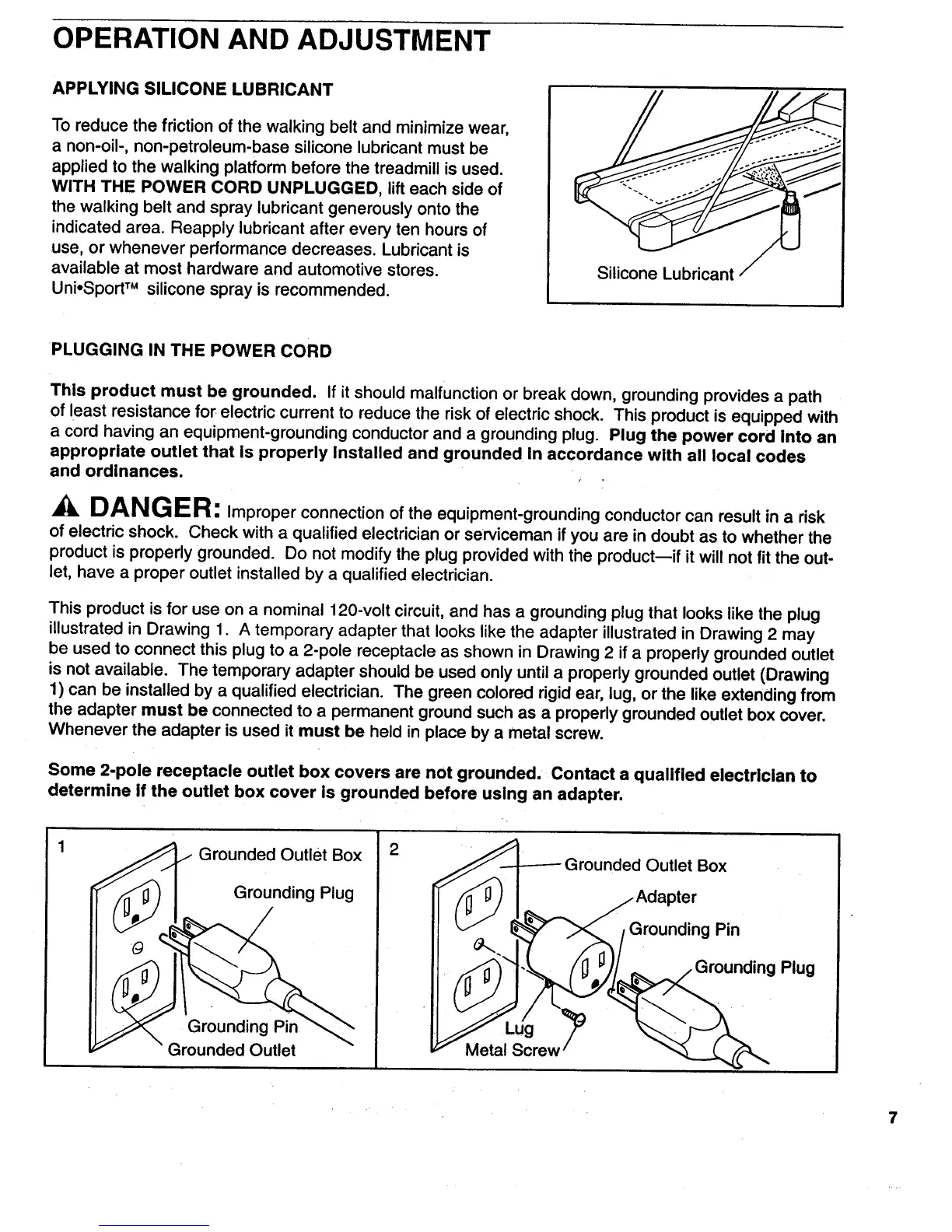 ProForm 910 - Operation and Power Connection; Silicone Lubricant Application; Proper Power Cord and Grounding