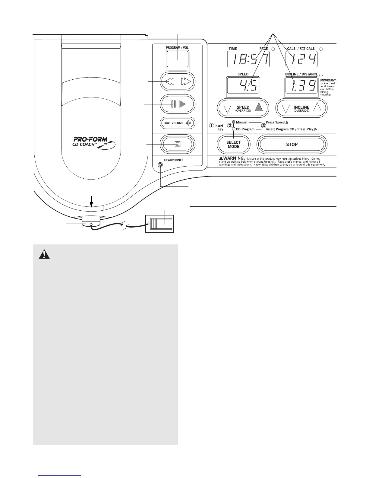 selected, the speed and incline of the treadmill can be