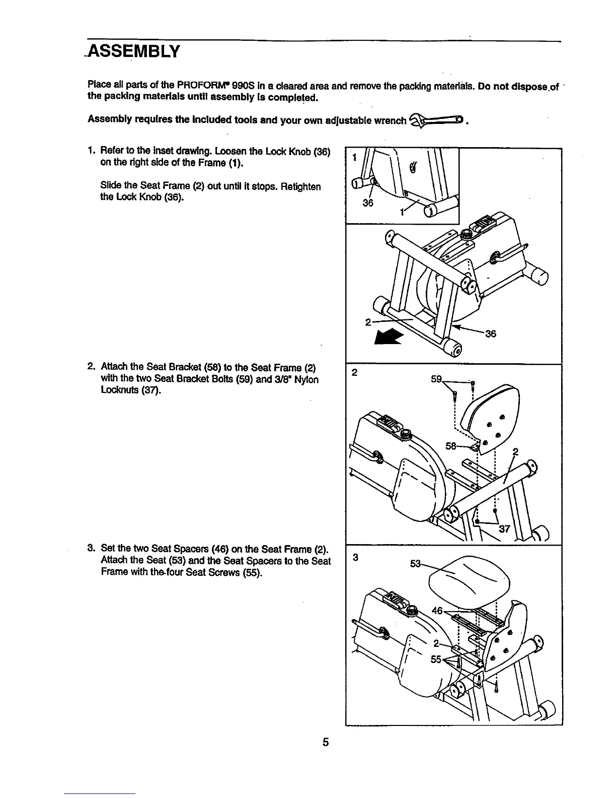 2. Attach the Seat Bracket (58) to the Seat Frame (2)