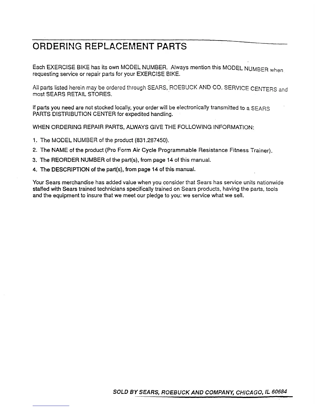 All parts listed herein may be ordered through SEARS, ROEBUCK AND CO. SERVICE CENTERS and