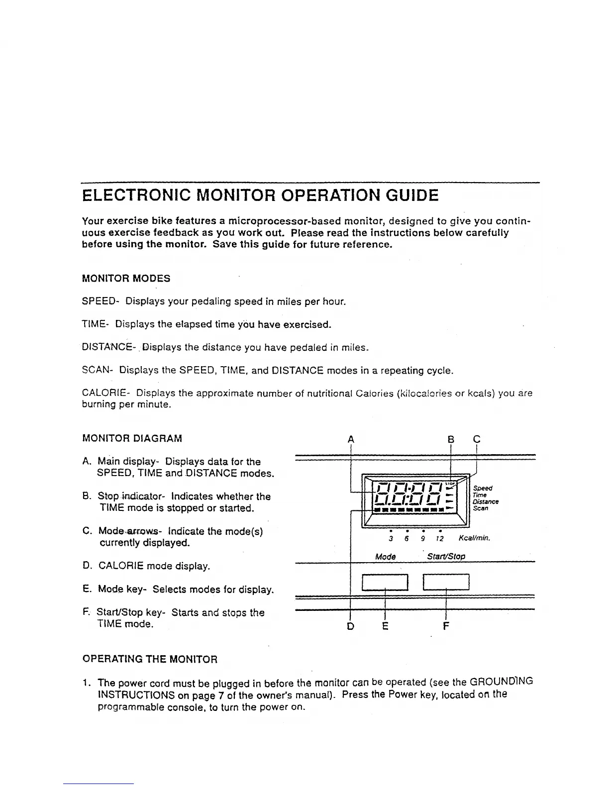 Your exercise bike features a microprocessor-based monitor, designed to give you contin-