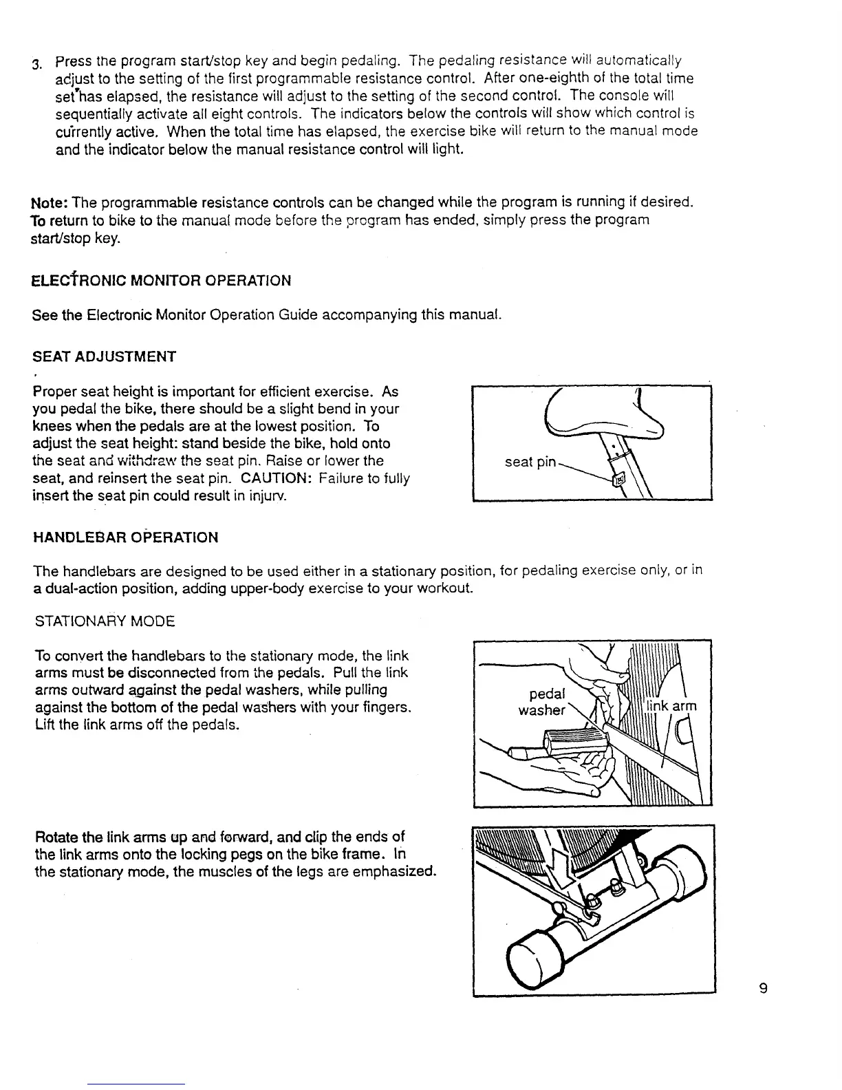 To convert the handlebars to the stationary mode, the link