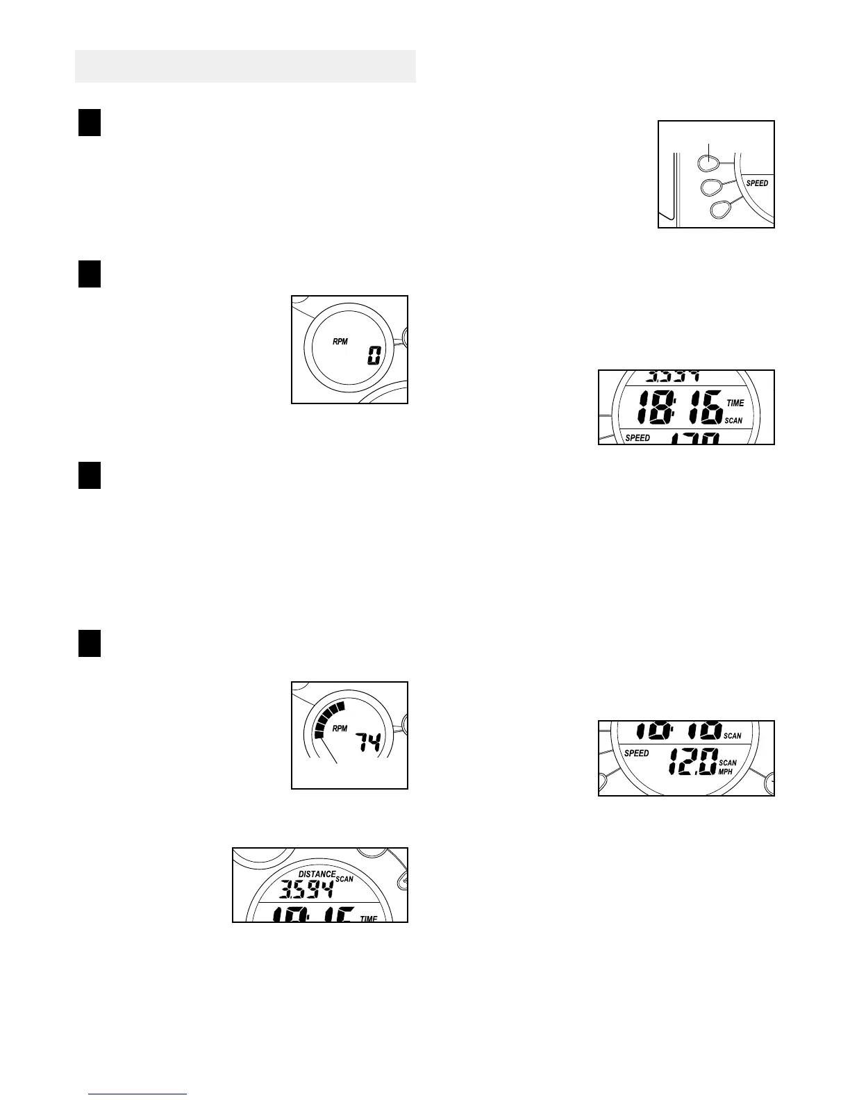 To view only your pedaling speed or the resis-