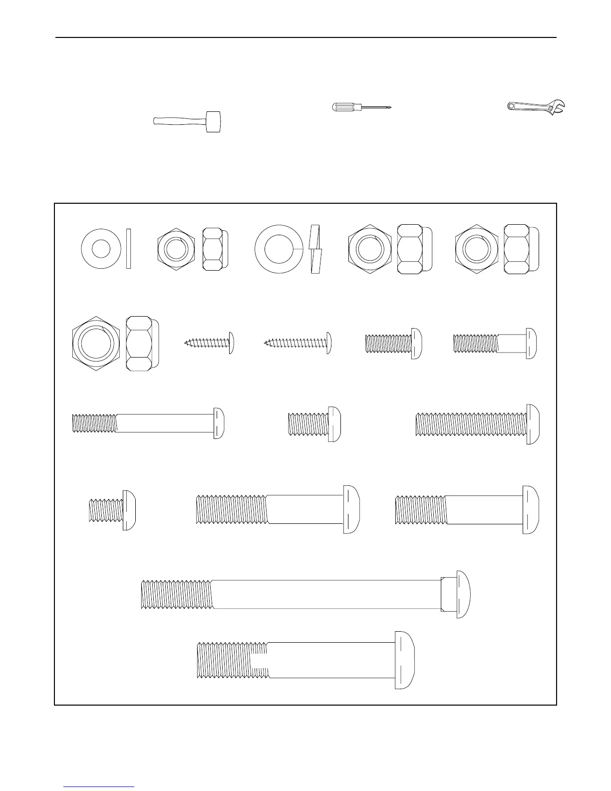 As you assemble the crosstrainer, use the drawings below to identify the small parts used in assembly. The