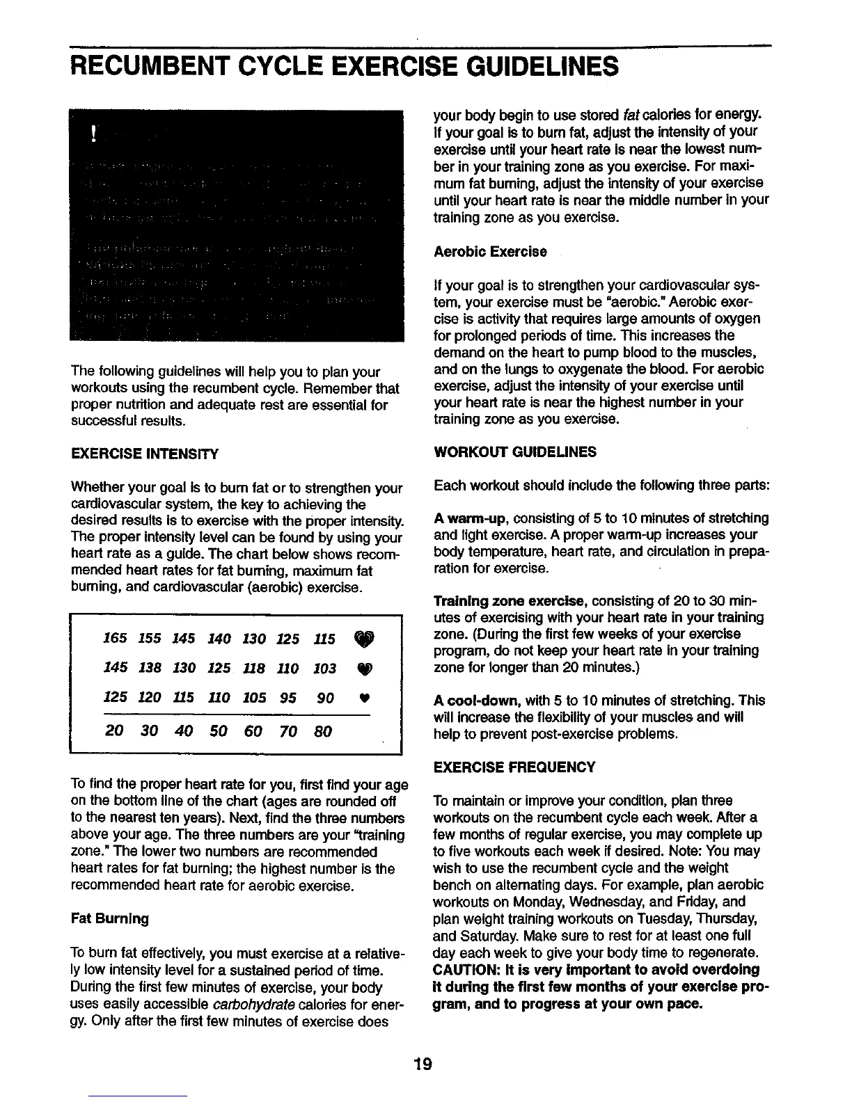 RECUMBENT CYCLE EXERCISE GUIDELINES