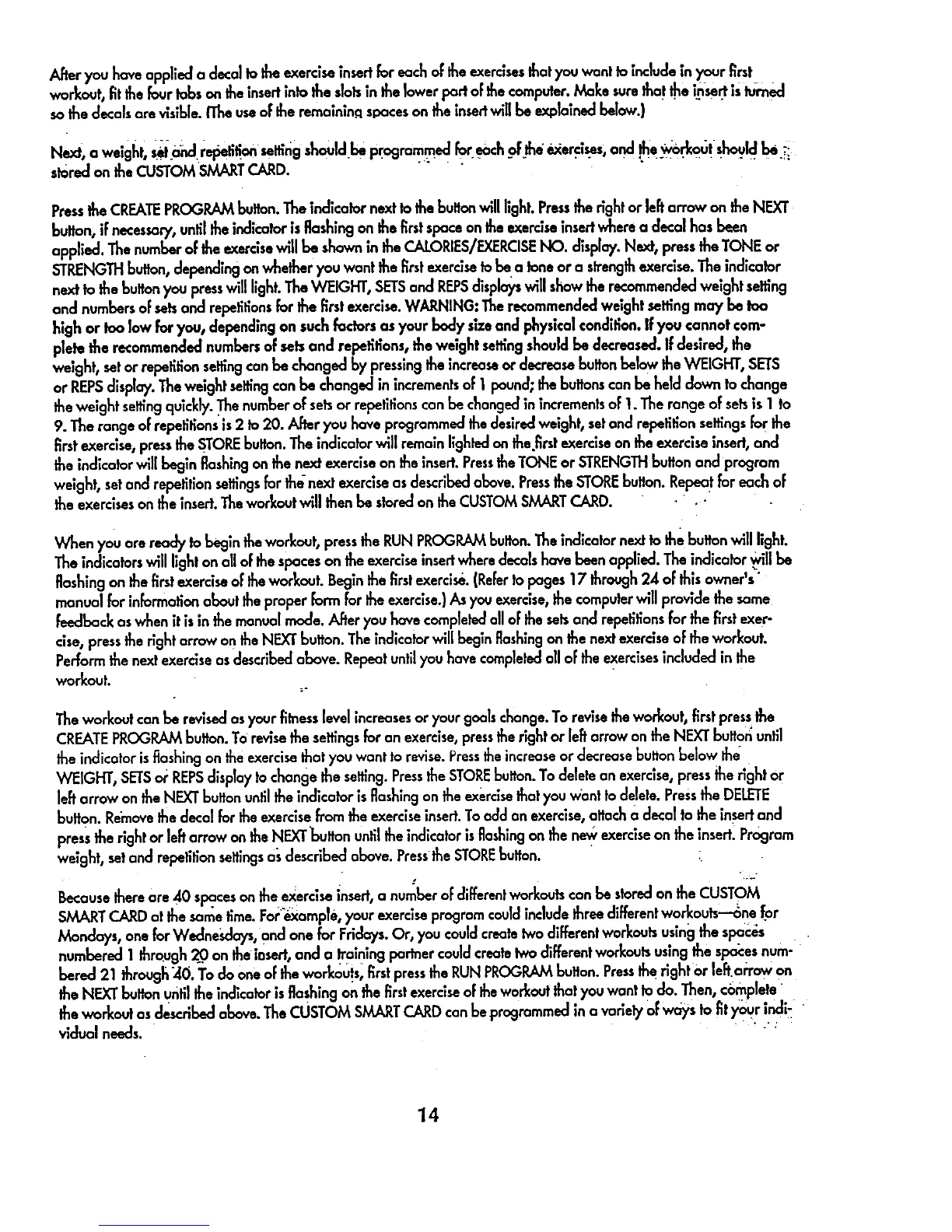 the workout asdescribed above.The CUSTOM SMARTCARD can be programmed in a variely OFways to fit your i_:]i-_