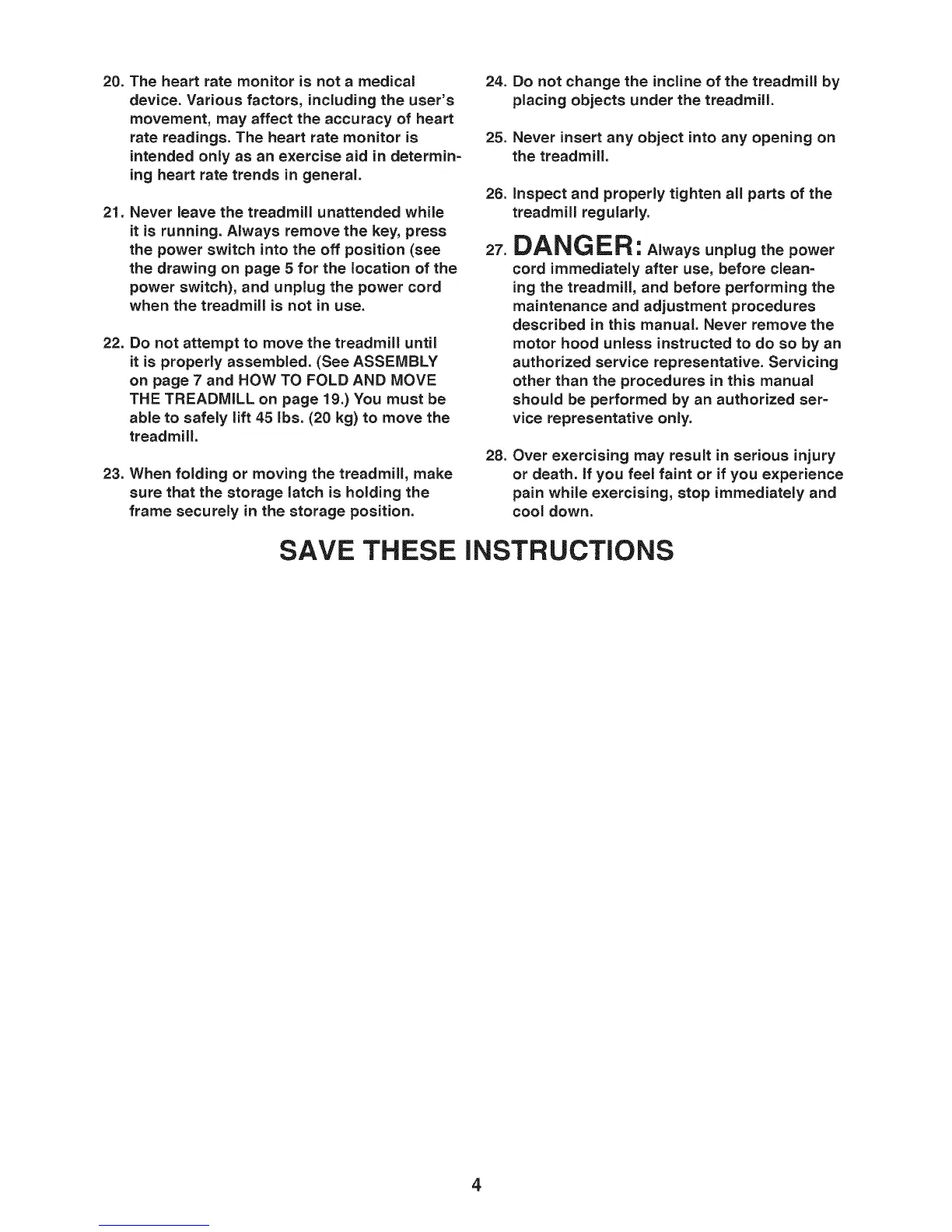 22. Do not attempt to move the treadmill until