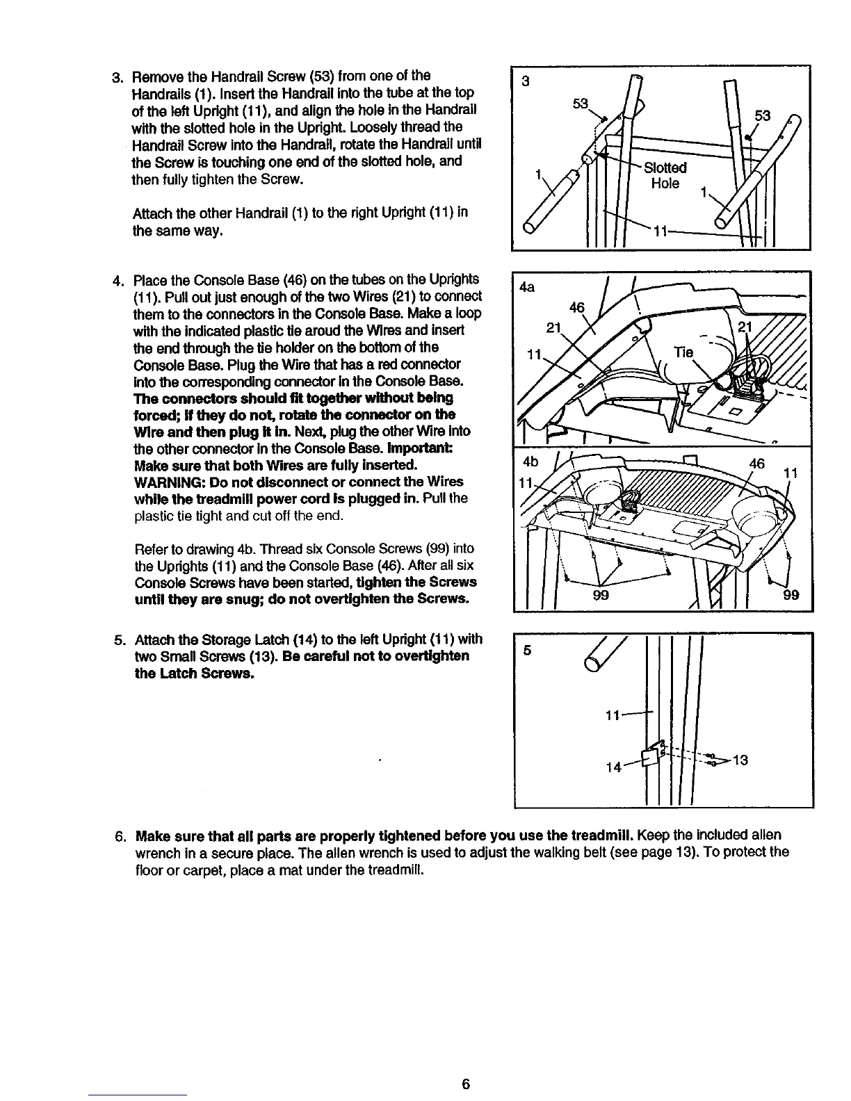 6. Make sure that all parts are properly tightened before you use the treadmill. Keep the included allen