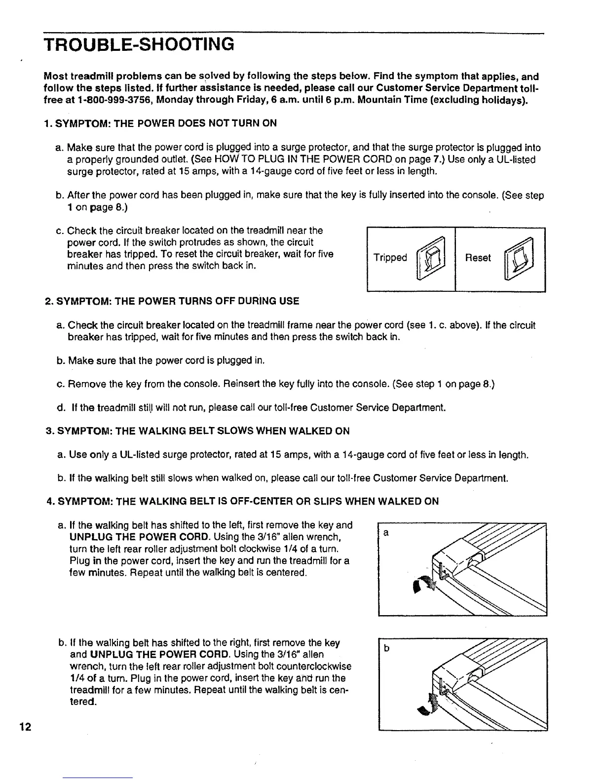 b. If the walking belt still slows when walked on, please call our toll-free Customer Service Department.