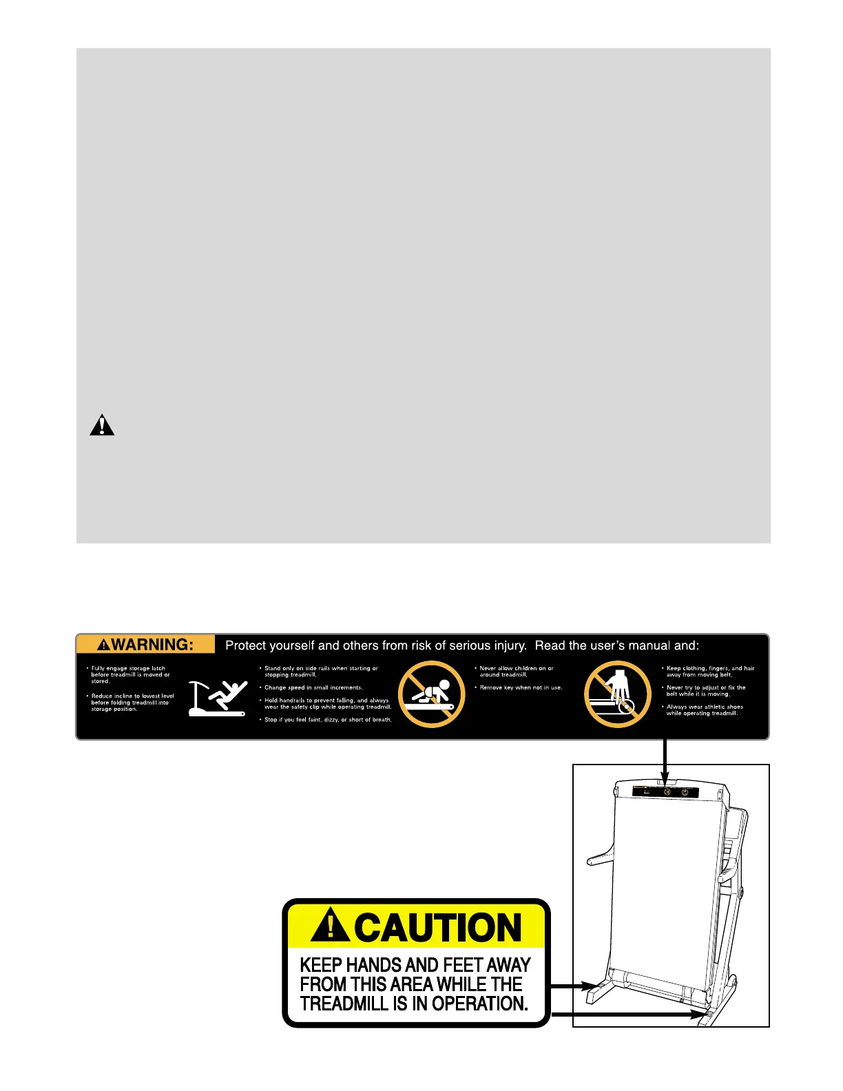 The decals shown below have been placed on your treadmill. If a decal is missing, or if it is not legible,