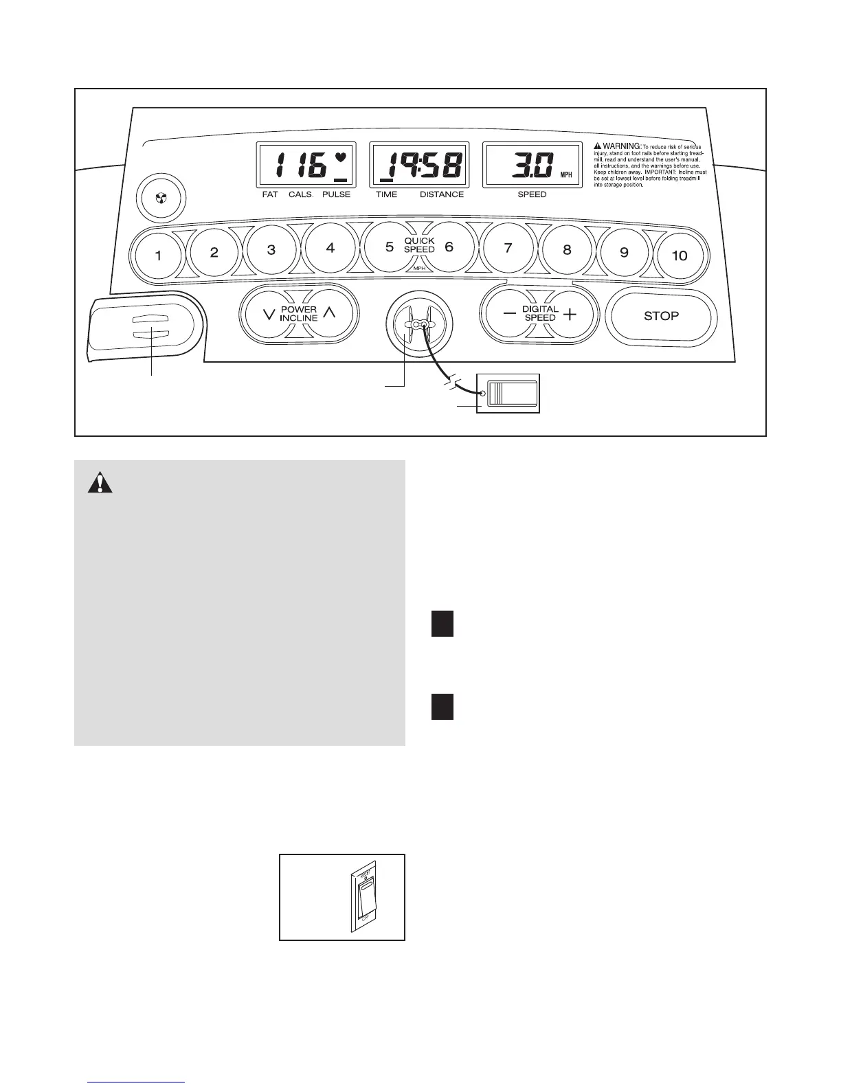 • Do not stand on the walking belt when turn-