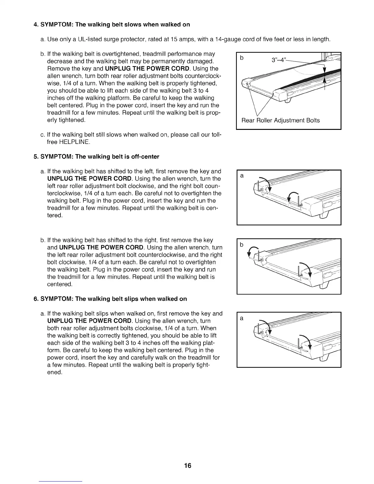 wise, 1/4 of a turn. When the walking belt is properly tightened,