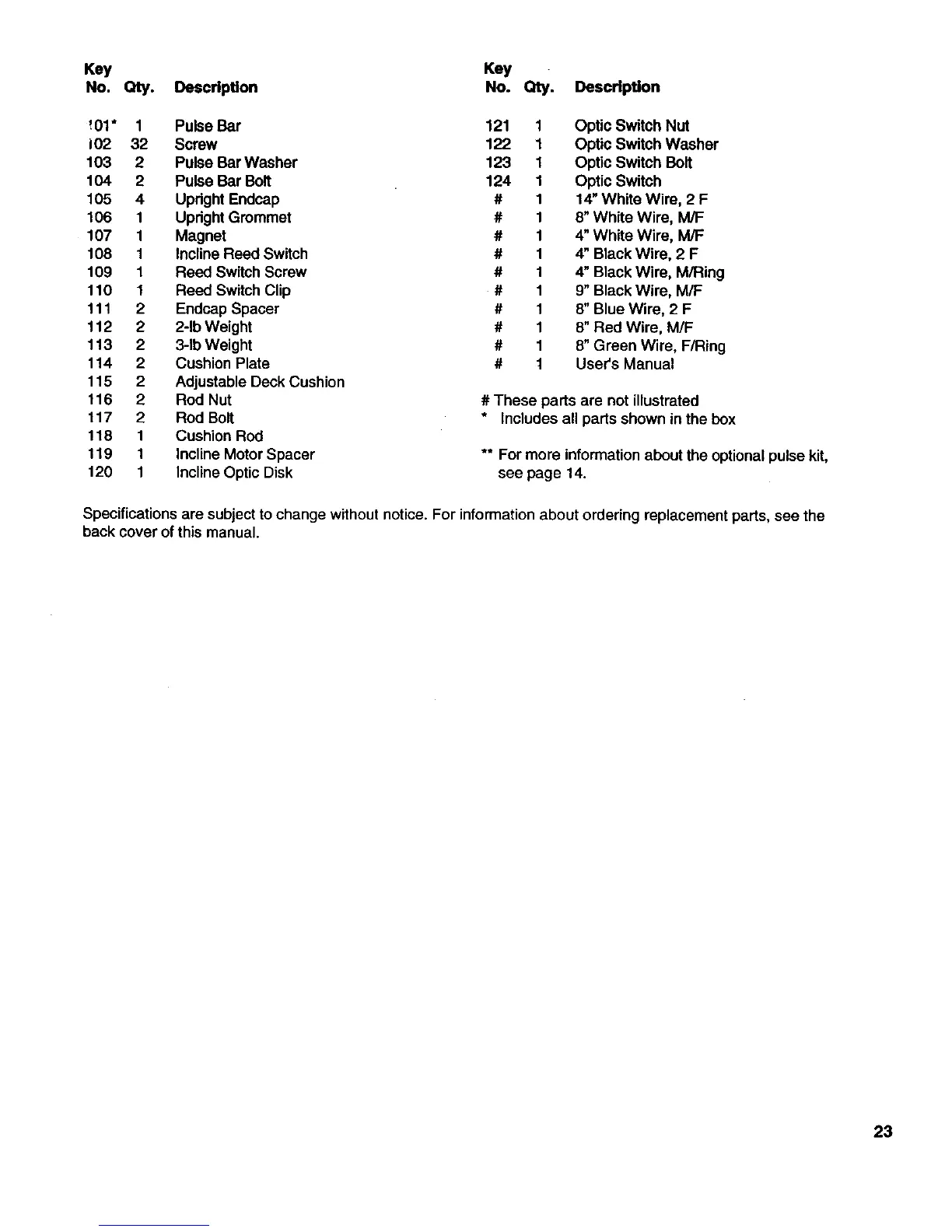 Specifications are subject to change without notice. For information about ordering replacement parts, see the