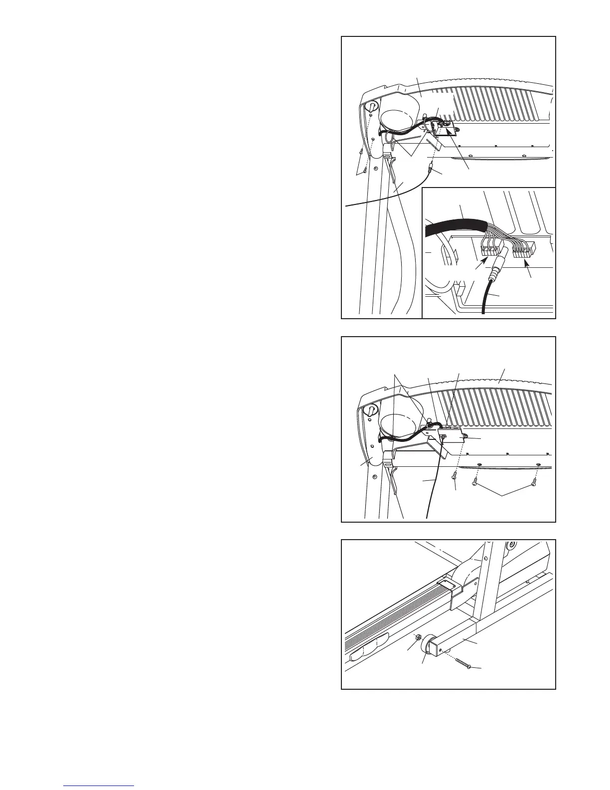 9. Make sure that all parts are properly tightened before you use the treadmill. Note: Extra hardware may