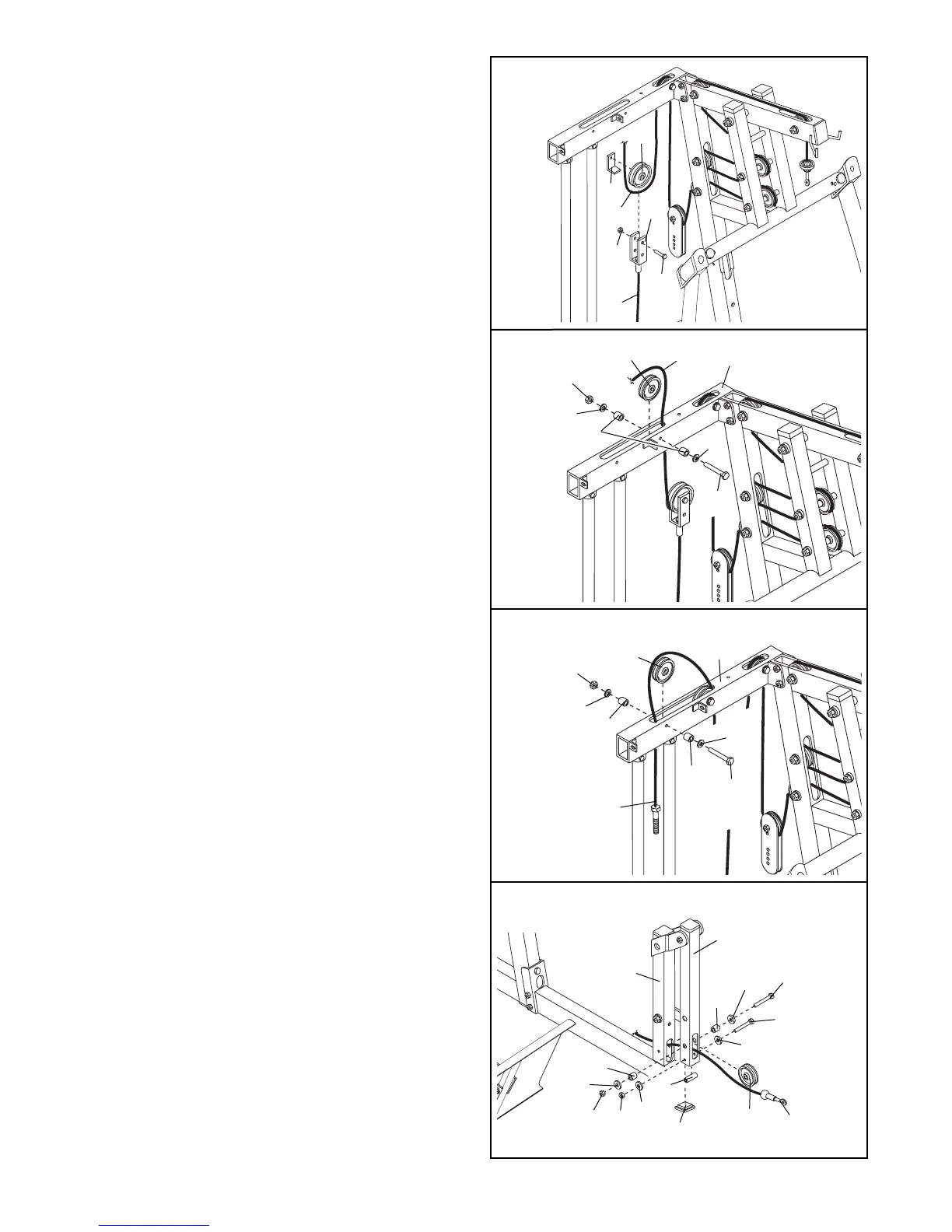 Attach a 4” Pulley (35) inside the Leg Lever (29)