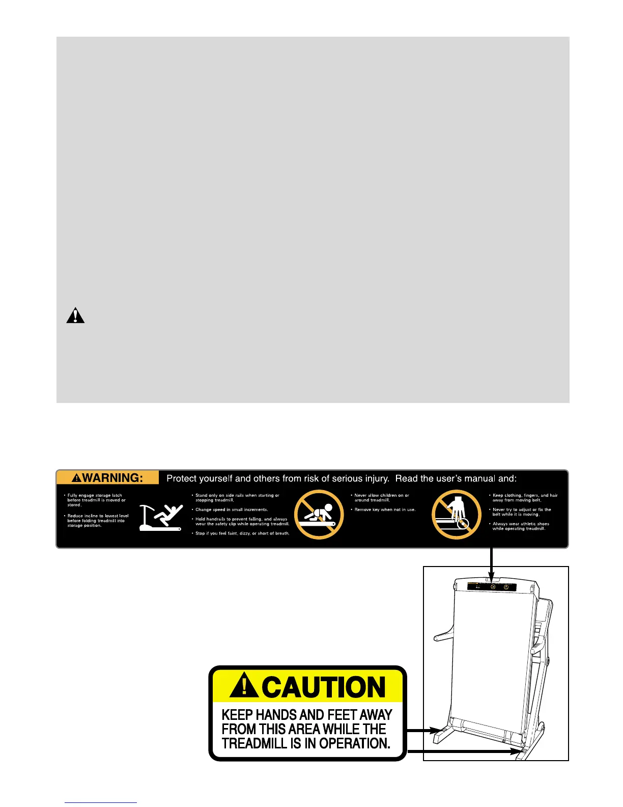 only. Do not use the treadmill in any