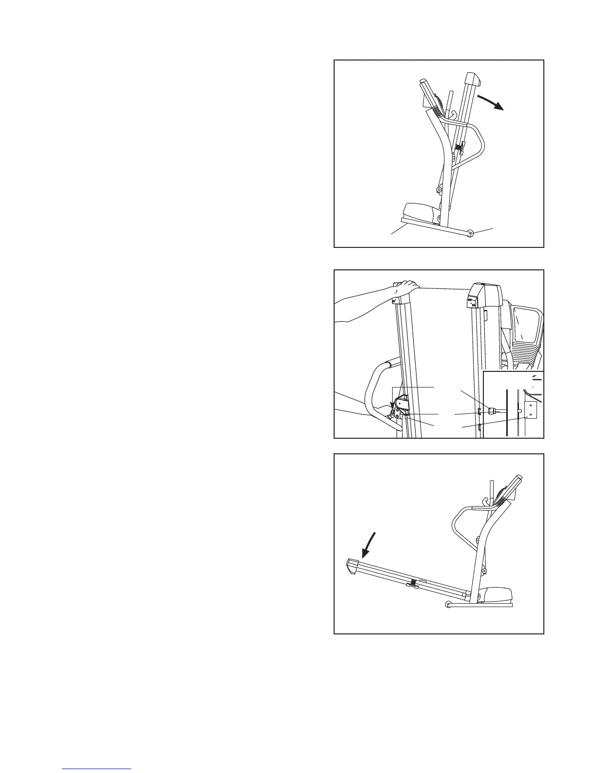 left and hold it. Pivot the treadmill down until the frame is