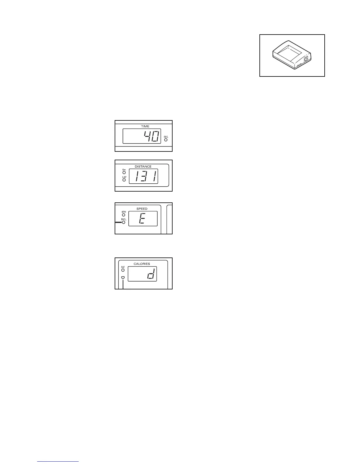 the CALORIES/PULSE display is blank.