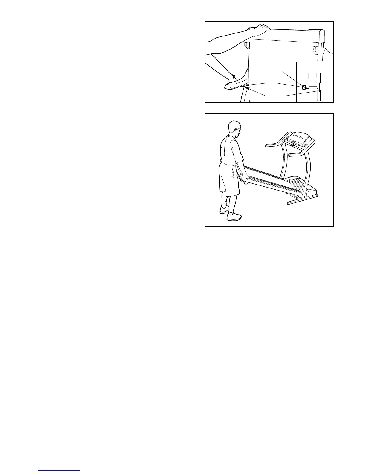 left and hold it. Pivot the treadmill down until the frame is