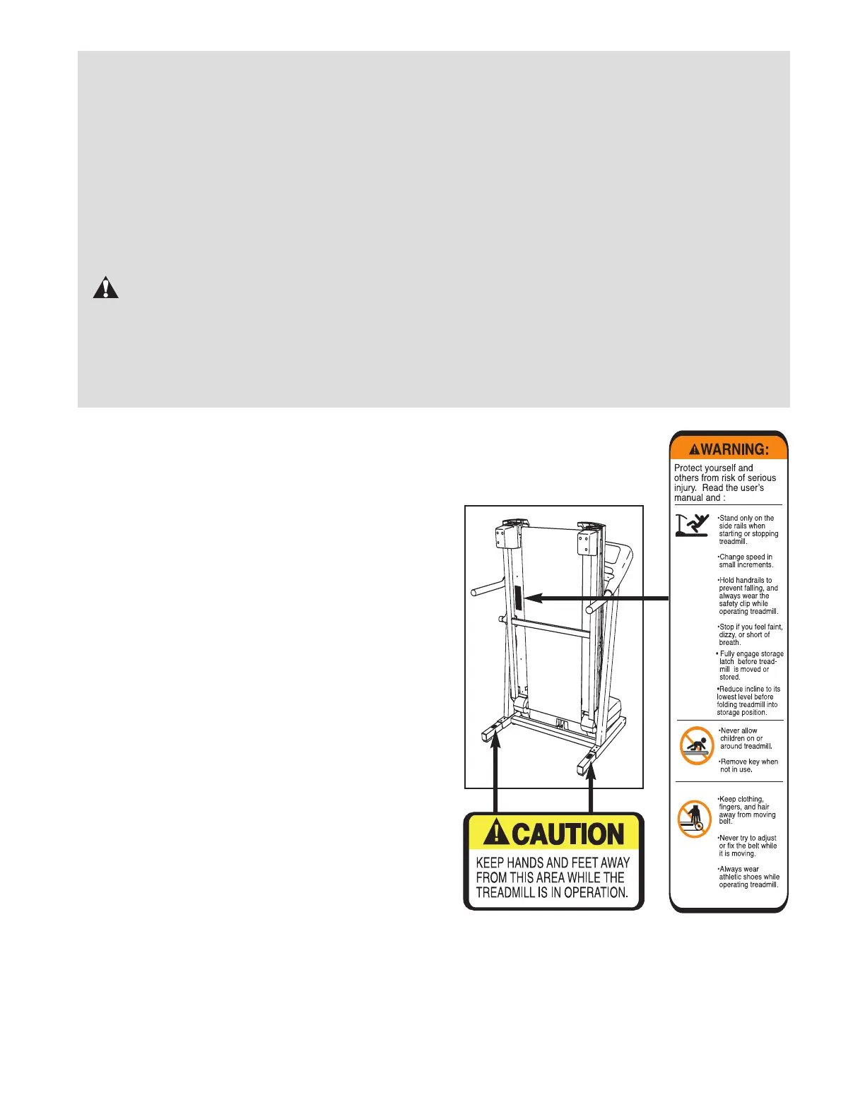 The decals shown here have been placed on your treadmill. If a decal is missing, or