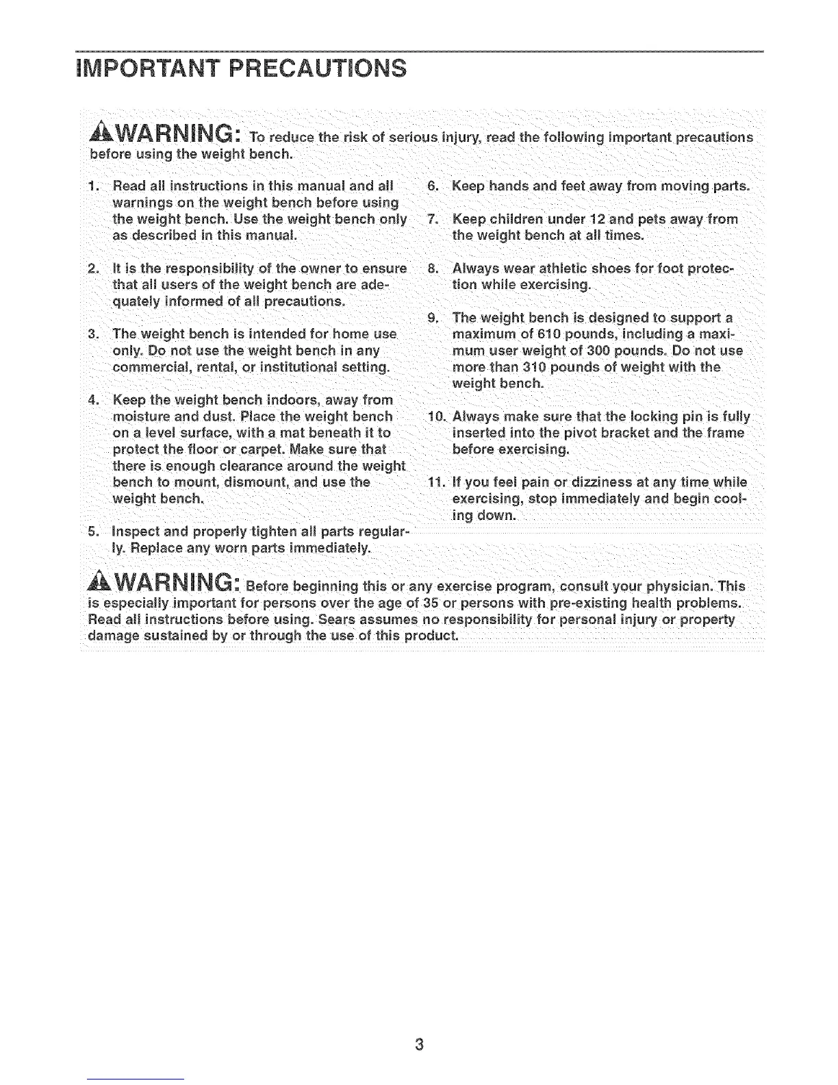 the weight bench. Use the weight bench onJy 7. Keep children under 12 and pets away from