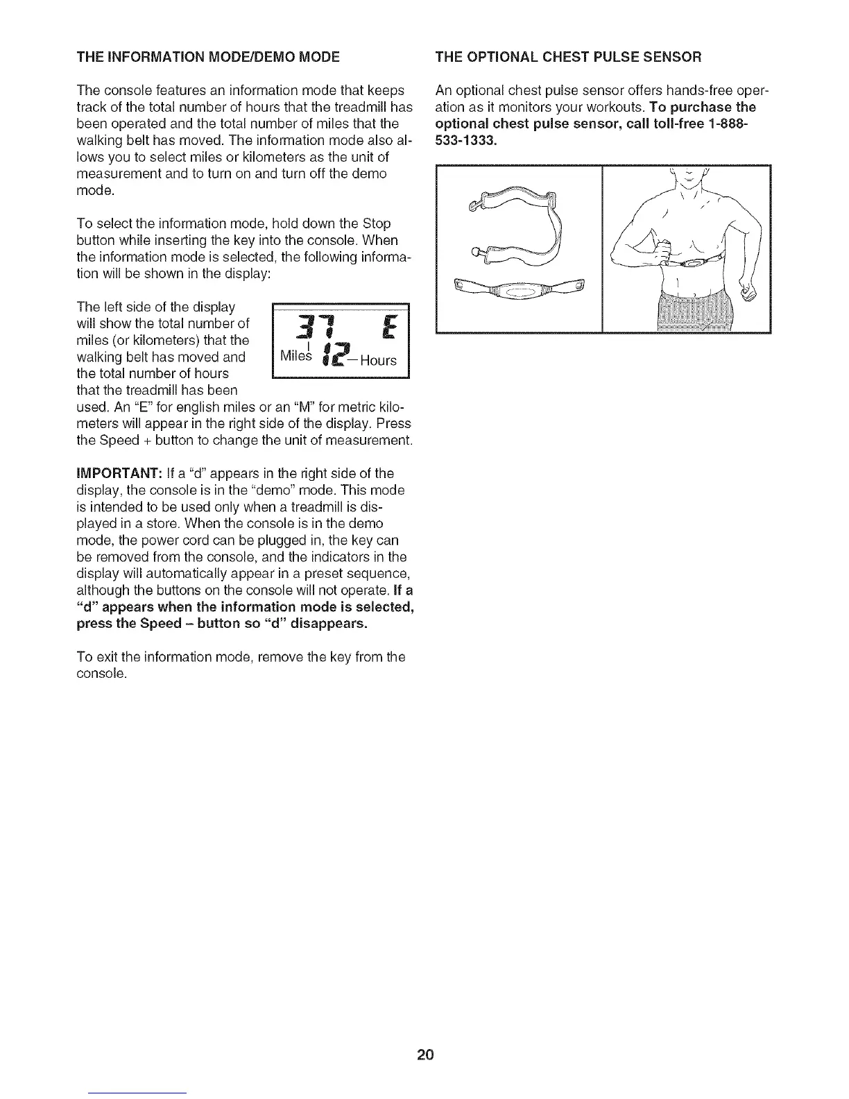 THE iNFORMATiON MODE/DEMO MODE THE OPTIONAL CHEST PULSE SENSOR