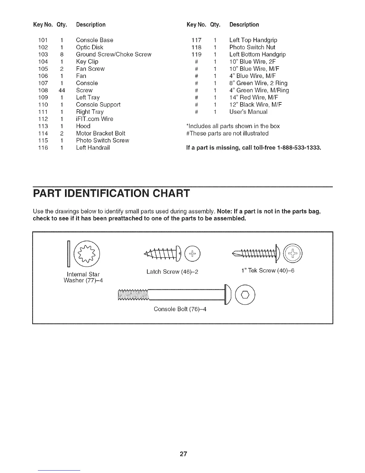 116 1 Left Handrail If a part is missing, call toll-free 1-888-533-1333.