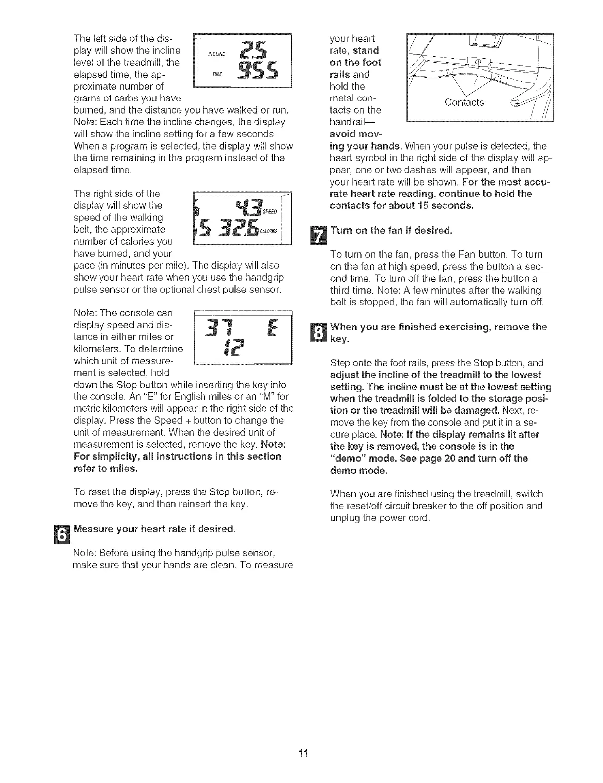 Note: Each time the incline changes, the display