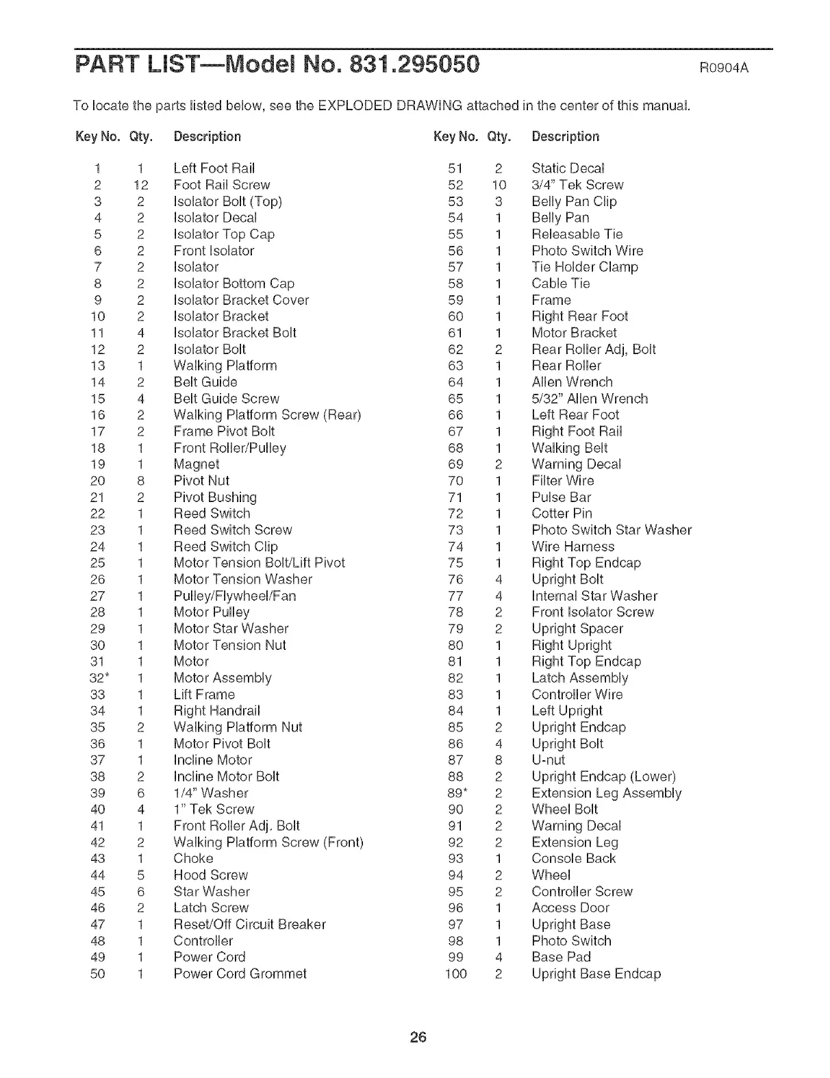 To Uocatethe parts Hsted beUow,see the EXPLODED DRAWUNG attached in the center of this manual