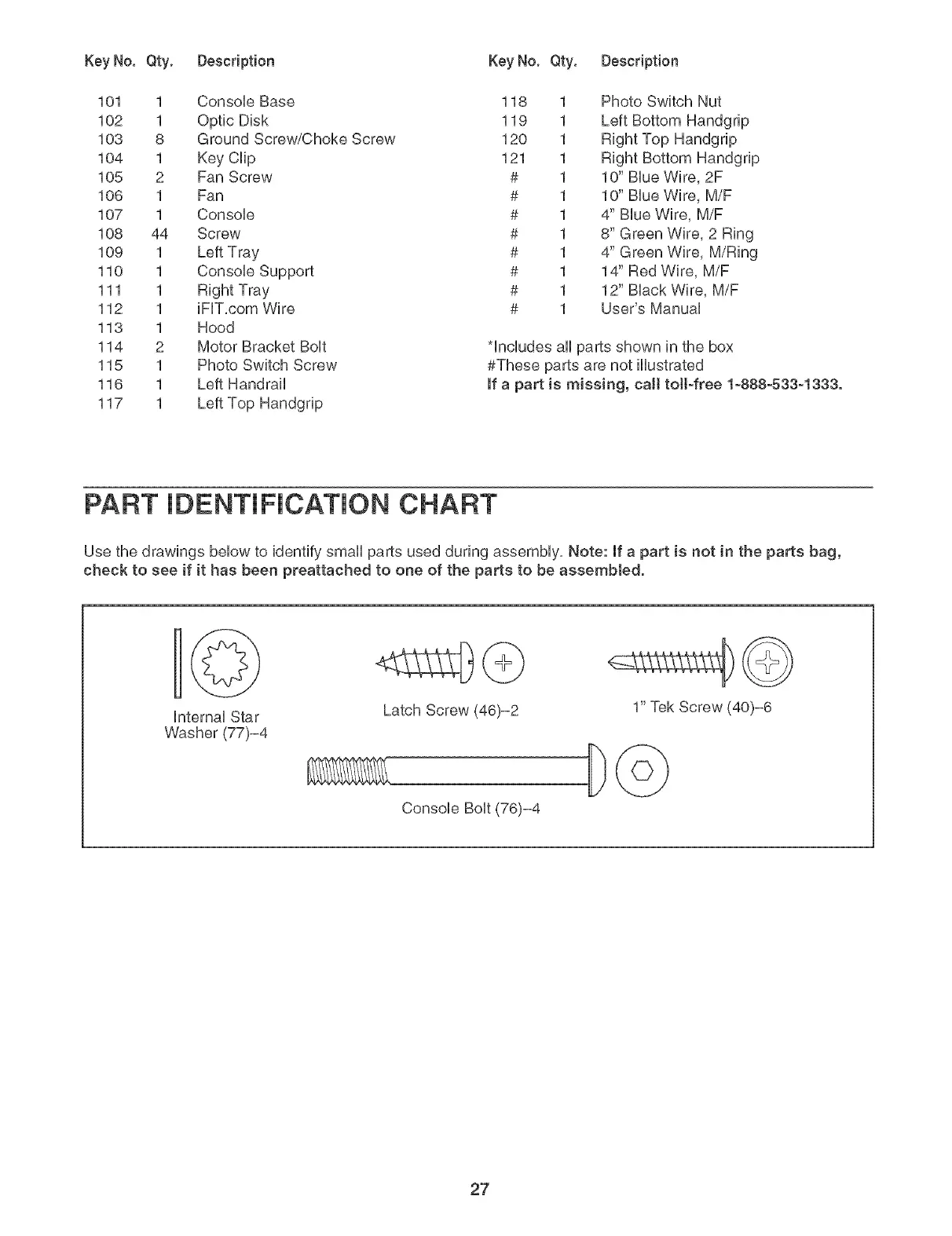 Use the drawings below to identify small parts used during assembly. Note: If a part is not in the parts bag,