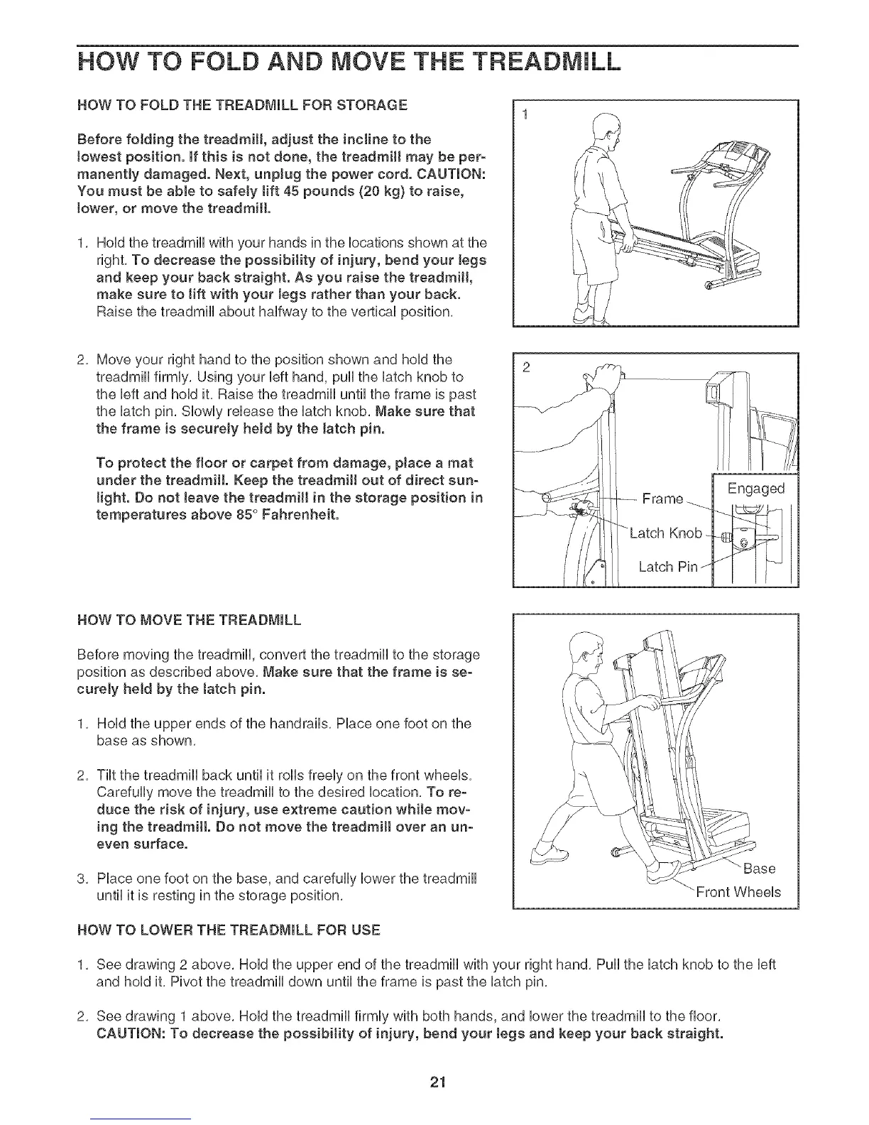 CAUTION: To decrease the possibility of injury, bend your tegs and keep your back straight.