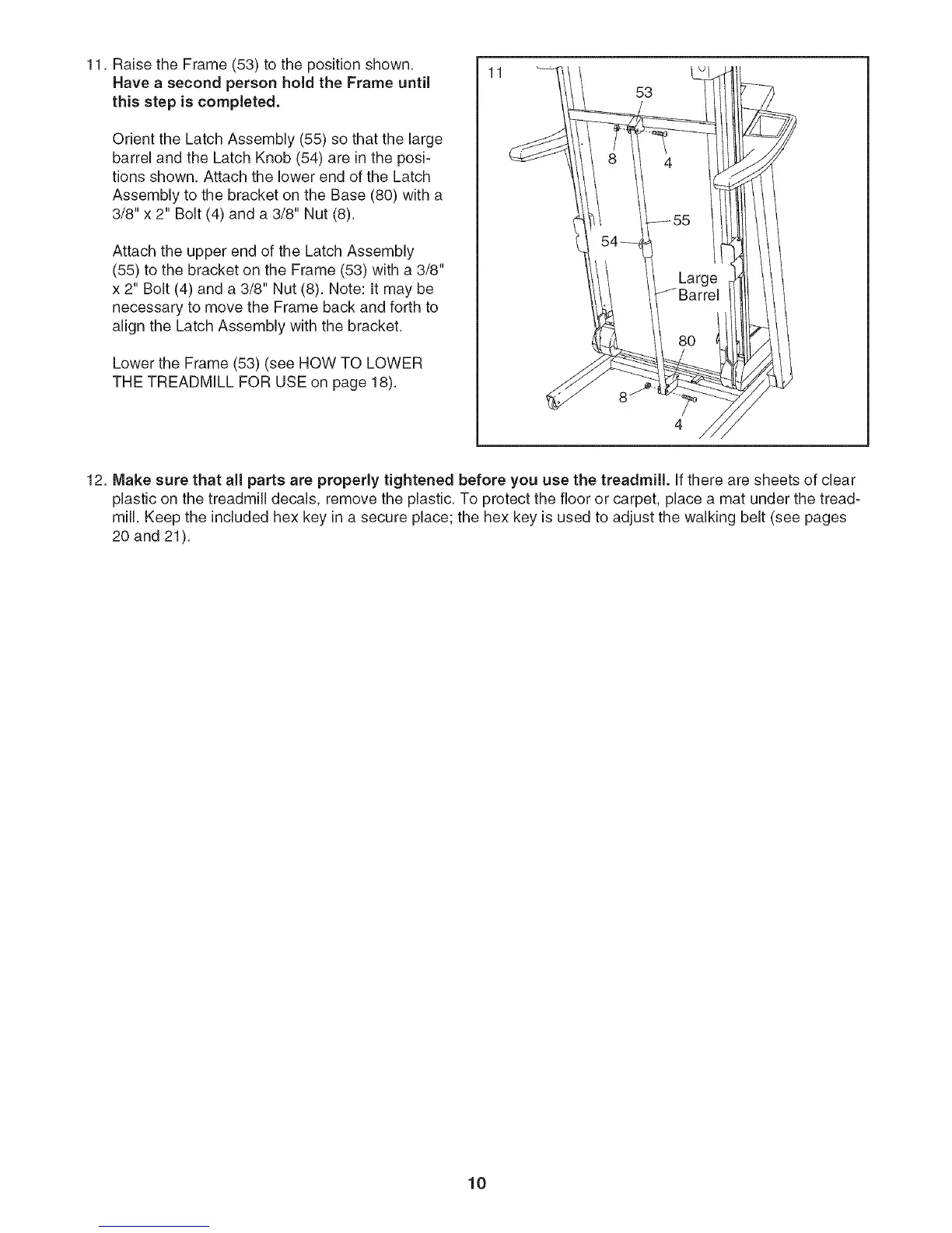 12. Make sure that all parts are properly tightened before you use the treadmill. If there are sheets of clear