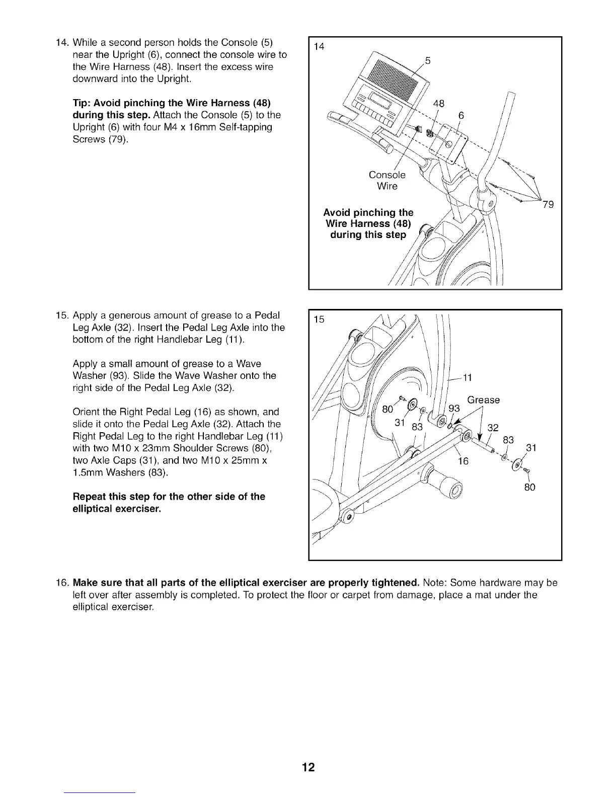 16. Make sure that all parts of the elliptical exerciser are properly tightened, Note: Some hardware may be